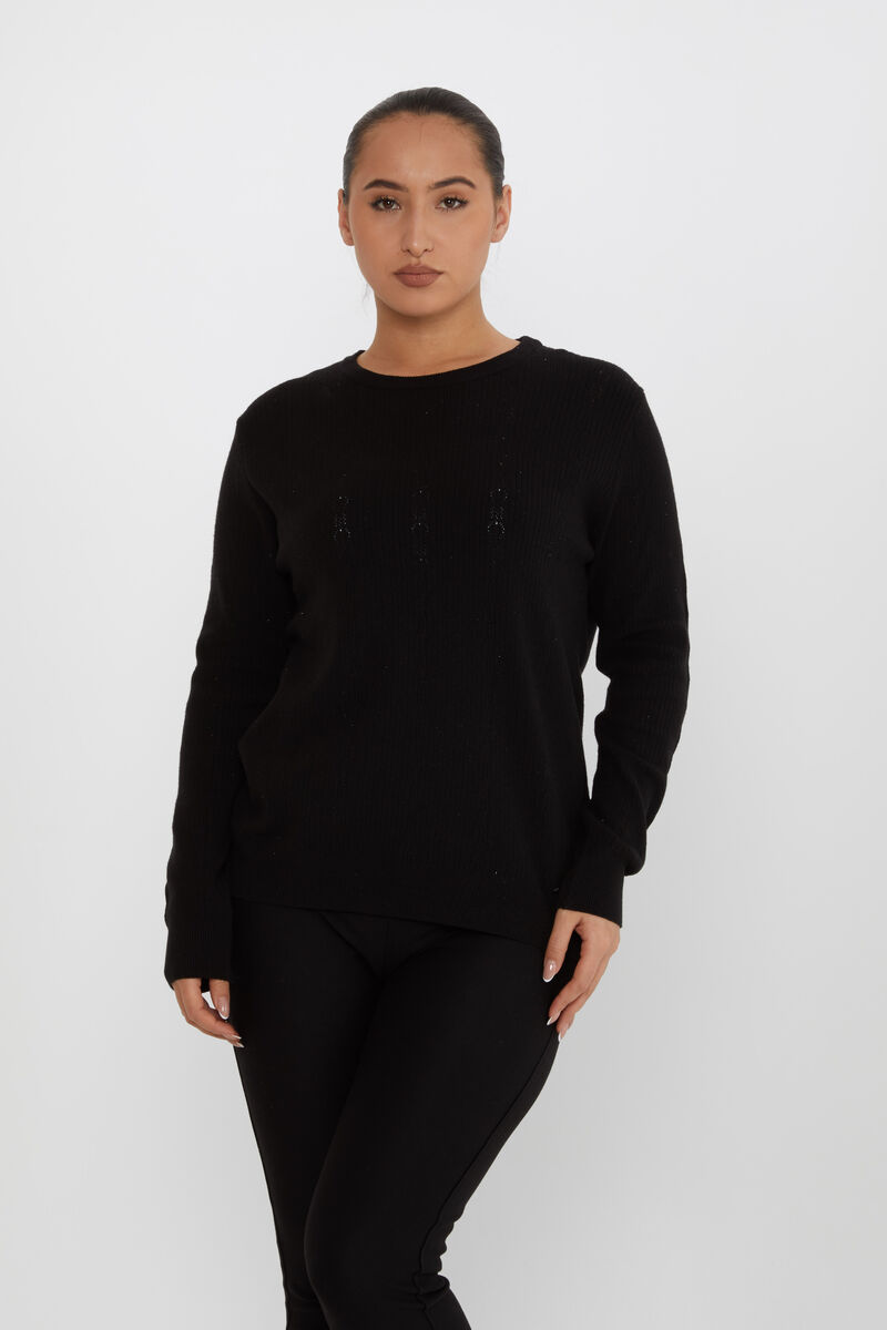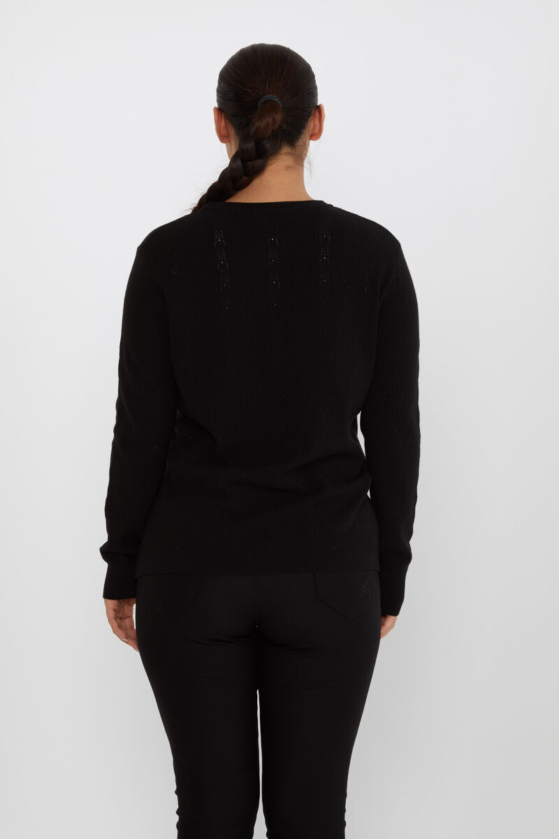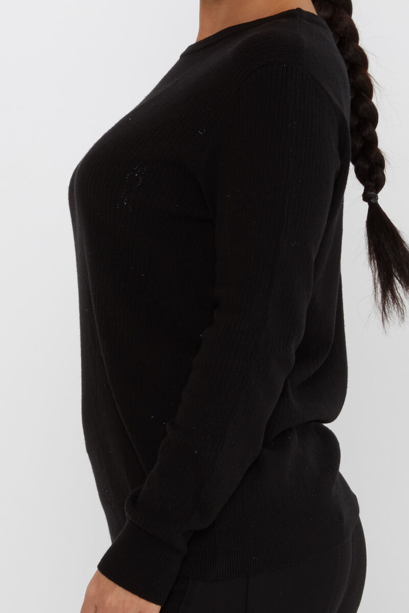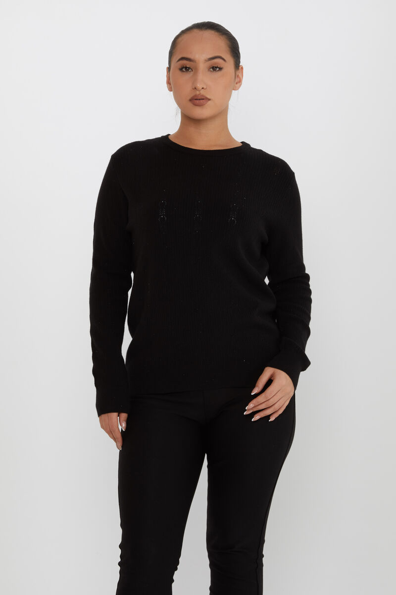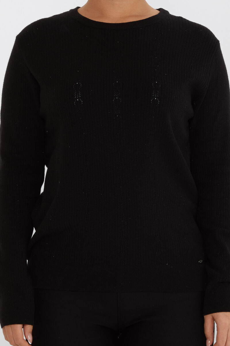 بلوزة نسائية محبوكة بأكمام طويلة باللون الأسود - 31004 | كازي