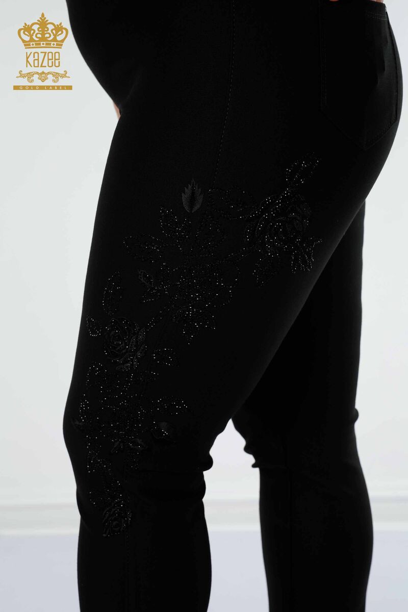 بنطلون نسائي مطرز بأحجار جيوب أسود - 3620 | كازي