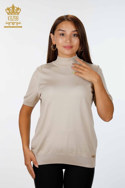 Bayan Triko Kazak Kısa Kol Dik Yaka Basic Viskon Bej - 16168 | KAZEE
