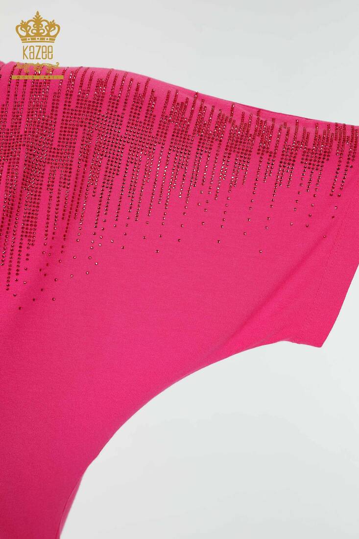 بلوزة نسائية مطرزة بأحجار الكريستال وياقة V فوشيا - 77938 | كازي
