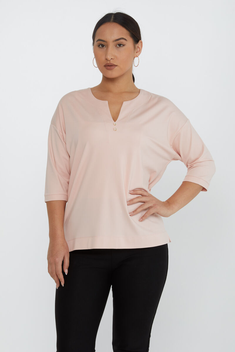 Женская блузка с воротником, украшенным камнями, пудра - 80029 | КАZEЕ