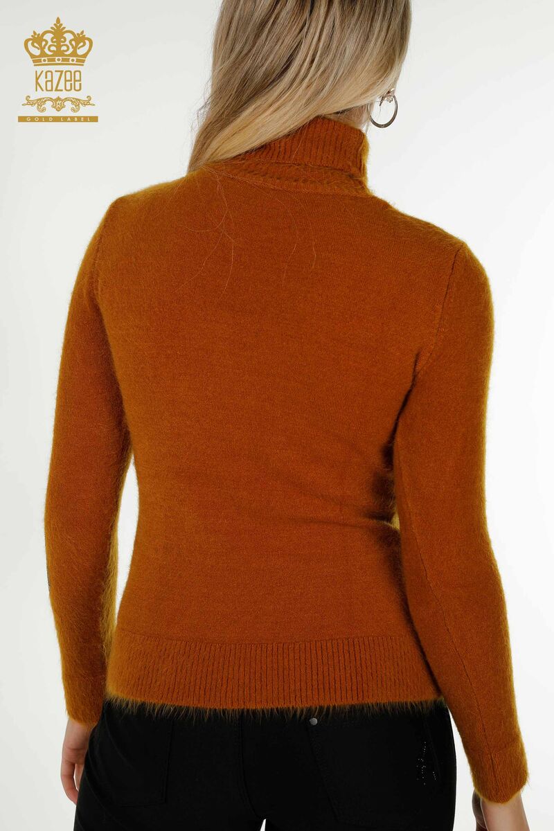 تريكو أنجورا للسيدات بياقة مدورة ومطرزة بأحجار على شكل أوراق شجر الخردل - 18899 | كازي