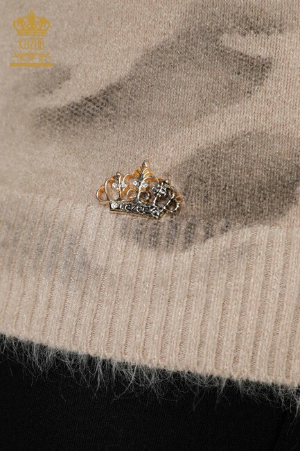 Kadın Angora Dik Yaka Kazee Logolu Bej - 18991 | KAZEE