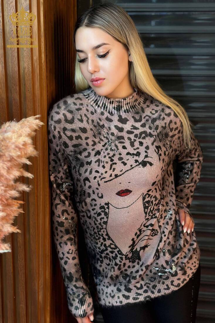 Kadın Angora Taş İşlemeli Dik Yaka Vizon - 18996 | KAZEE