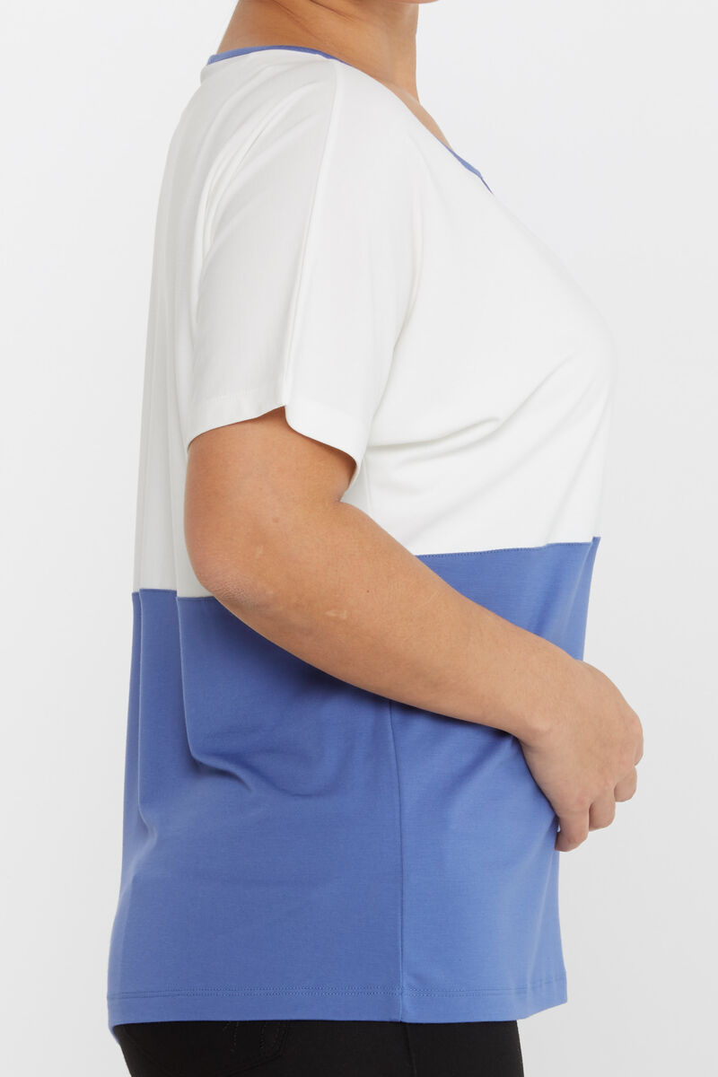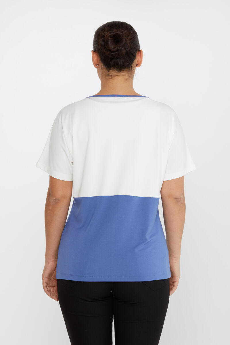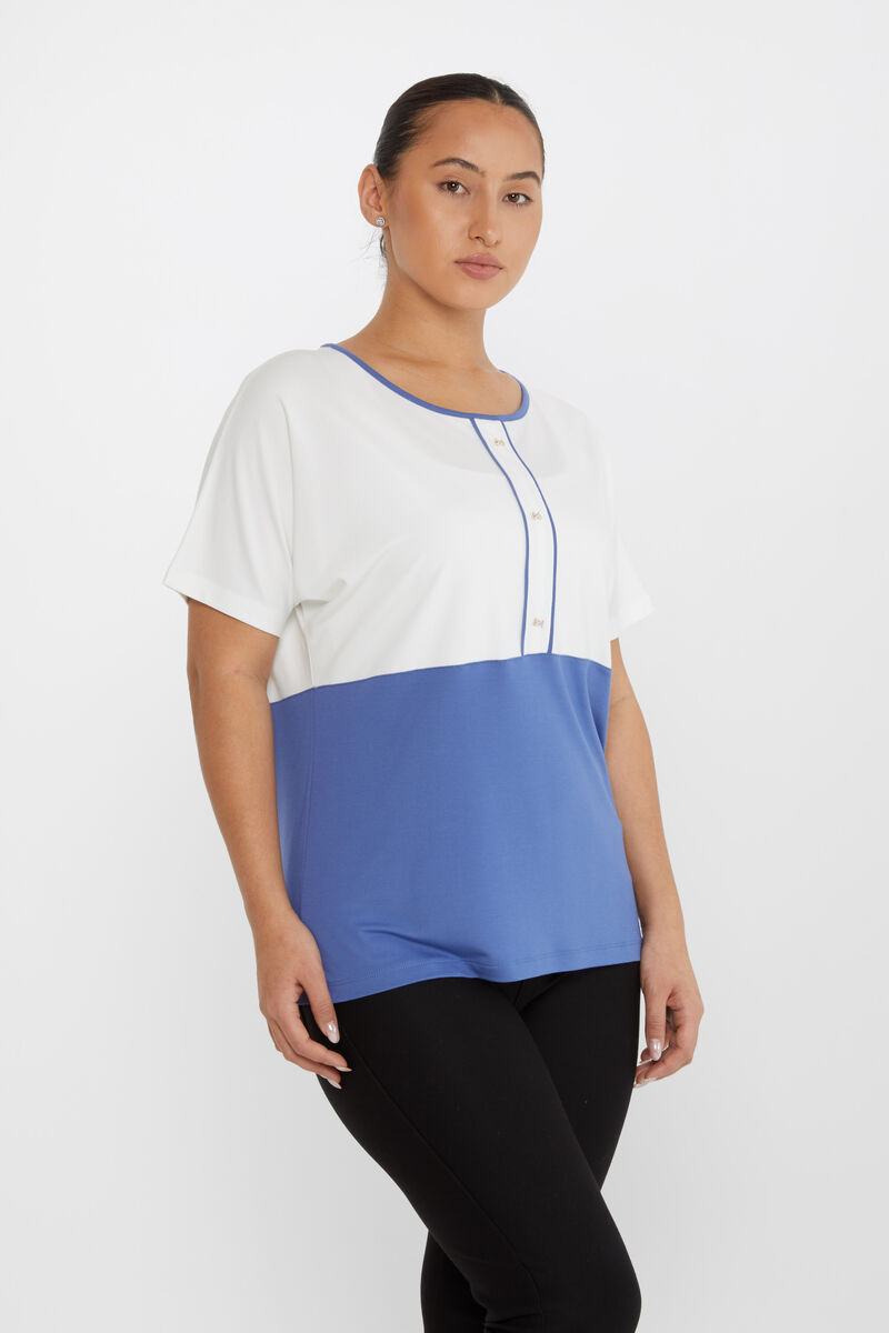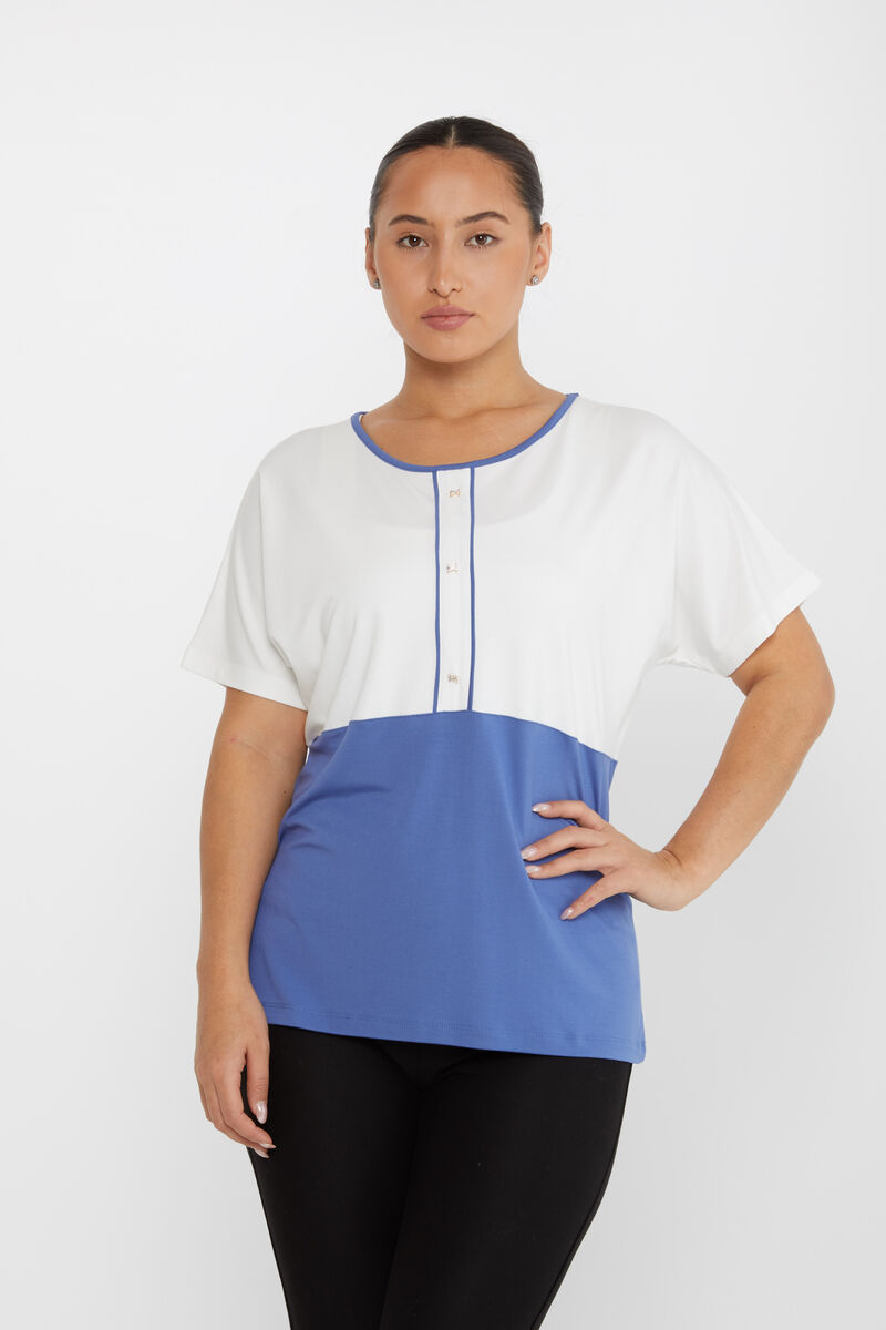 Kadın Bluz Çift Renk Düğme Detaylı İndigo - 80025 | KAZEE