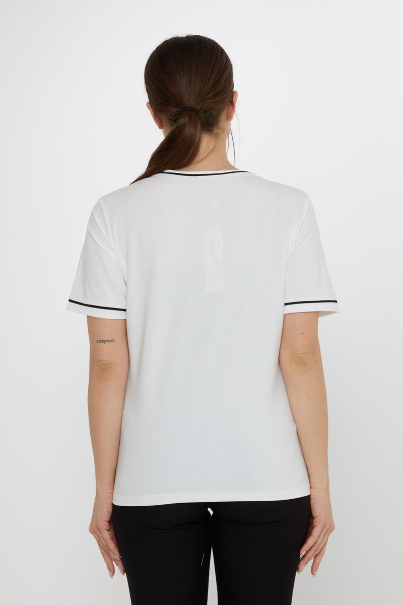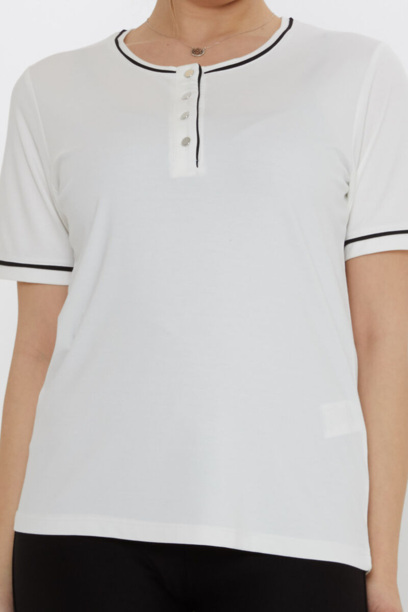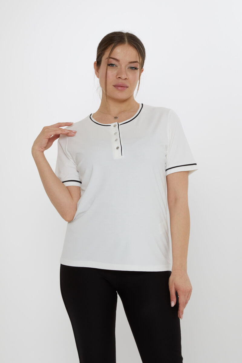 Kadın Bluz Düğme Detaylı Kısa Kollu Ekru - 80049 | KAZEE