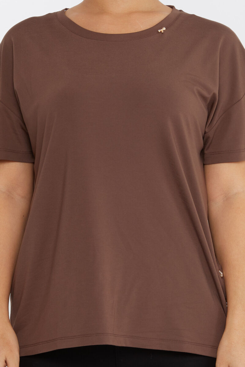 Kadın Bluz Düğme Detaylı Bisiklet Yaka Kahve - 79998 | KAZEE