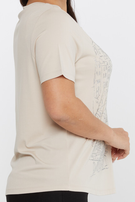 Kadın Bluz Taş Detaylı Kısa Kollu Açık Bej - 79953 | KAZEE