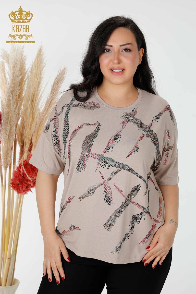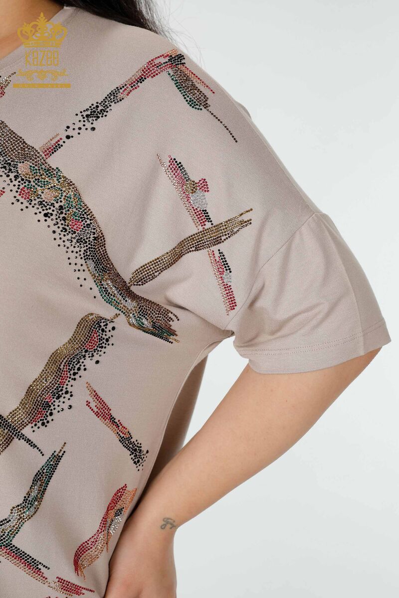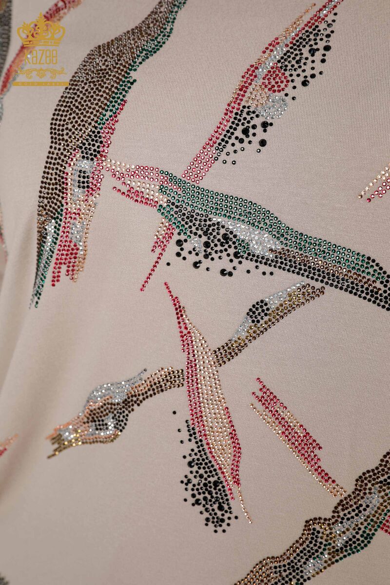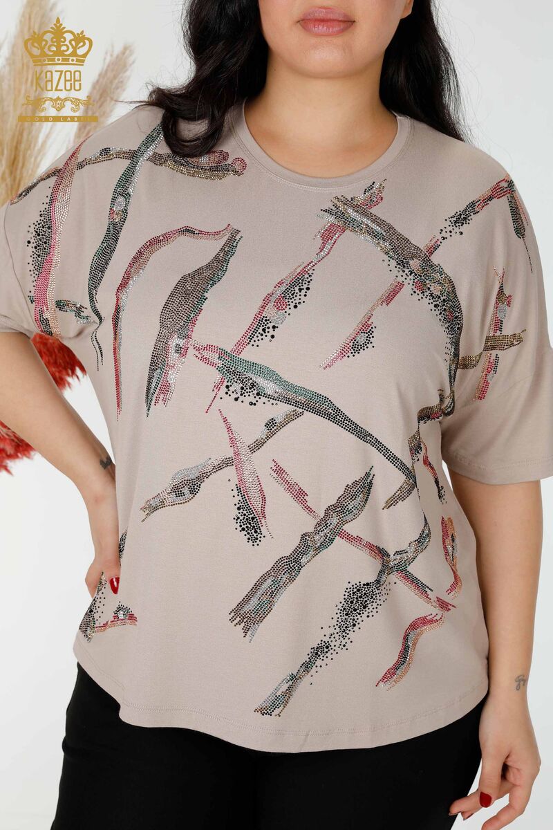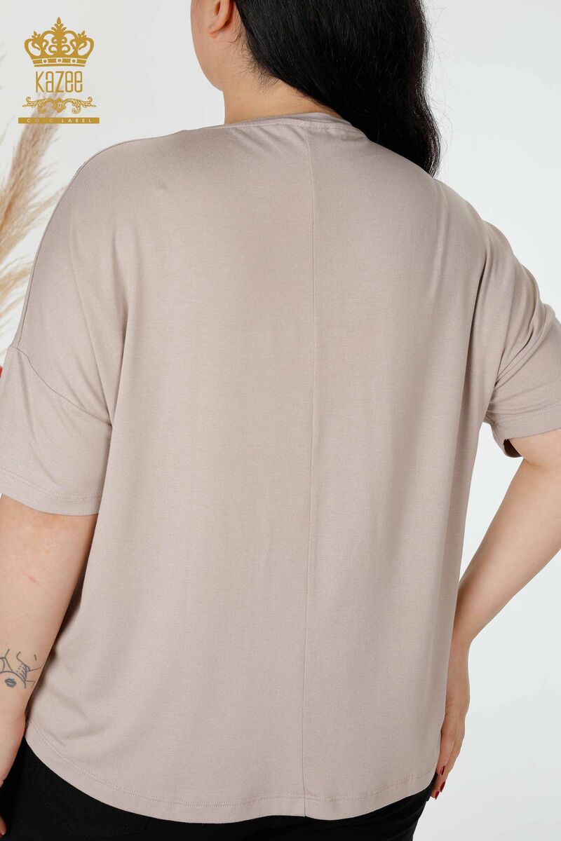 Kadın Bluz Taş İşlemeli Bisiklet Yaka Bej - 78907 | KAZEE