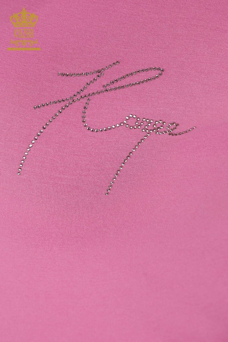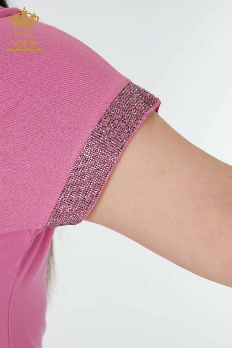 Kadın Bluz Taş İşlemeli Bisiklet Yaka Lila - 78918 | KAZEE