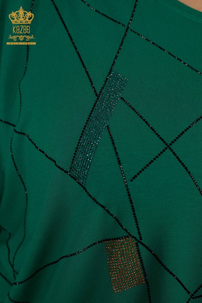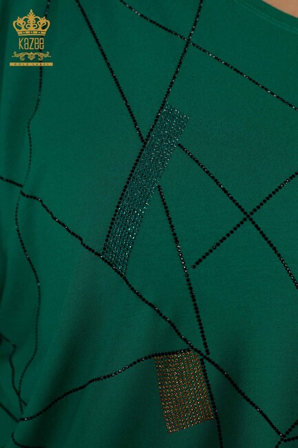 Kadın Bluz Taş İşlemeli V Yaka Yeşil - 79320 | KAZEE