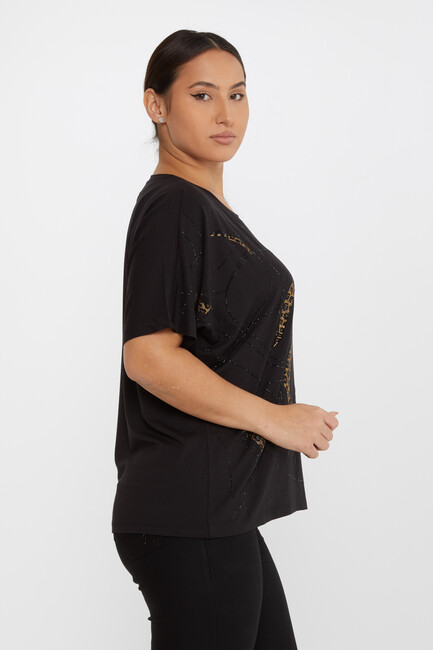 Kadın Bluz Taşlı Leopar Desenli Siyah - 79618 | KAZEE
