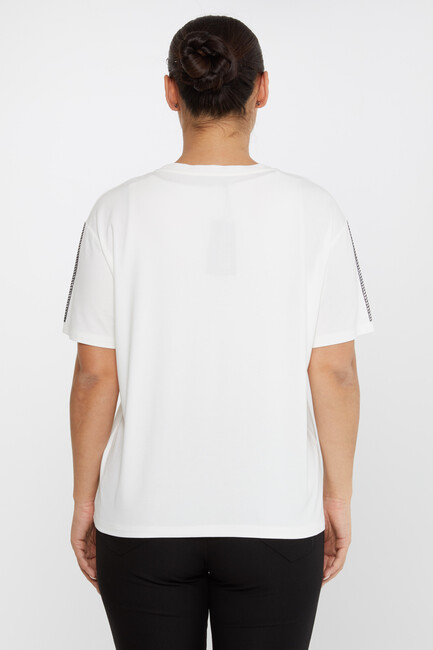 Kadın Bluz Taşlı Yazı Detaylı Ekru - 80100 | KAZEE