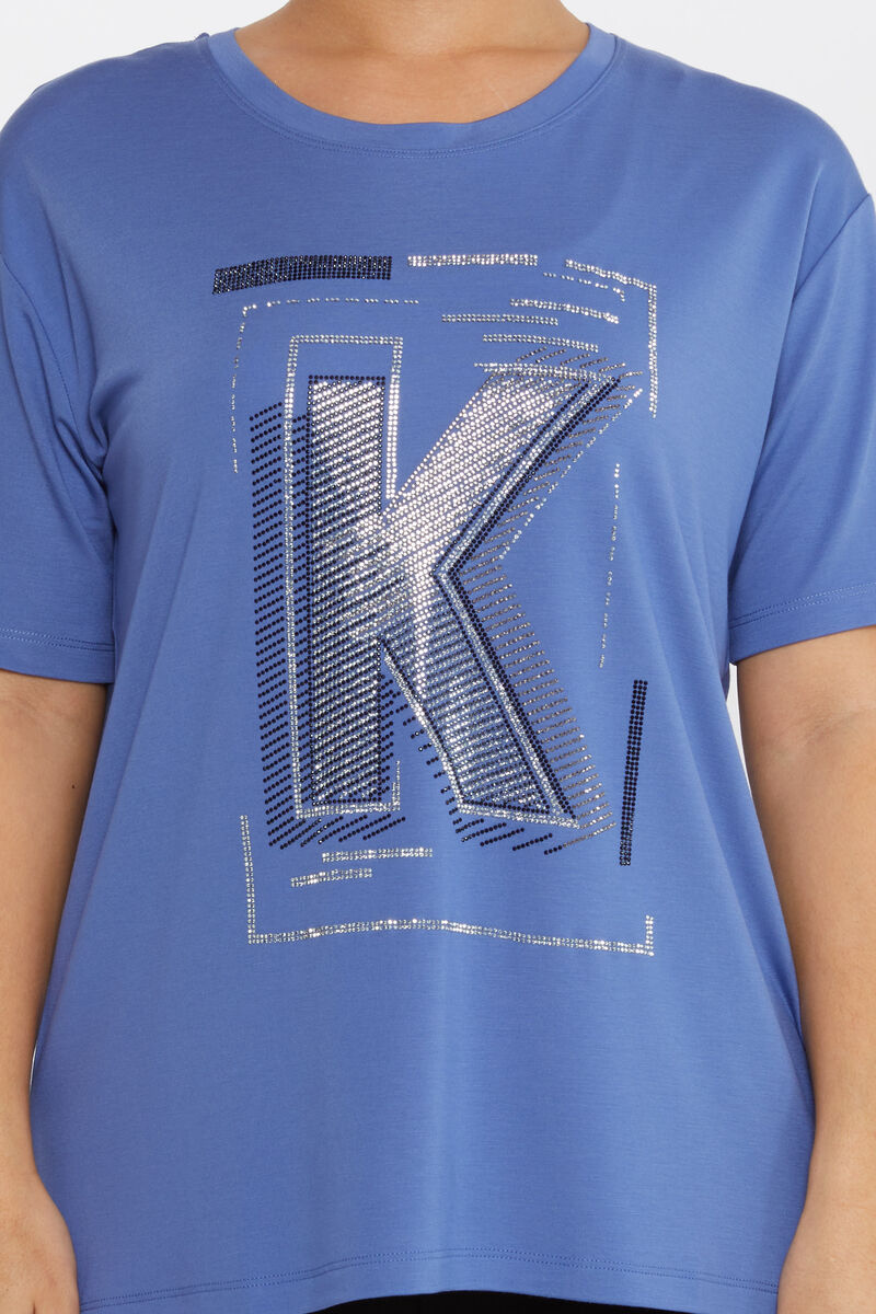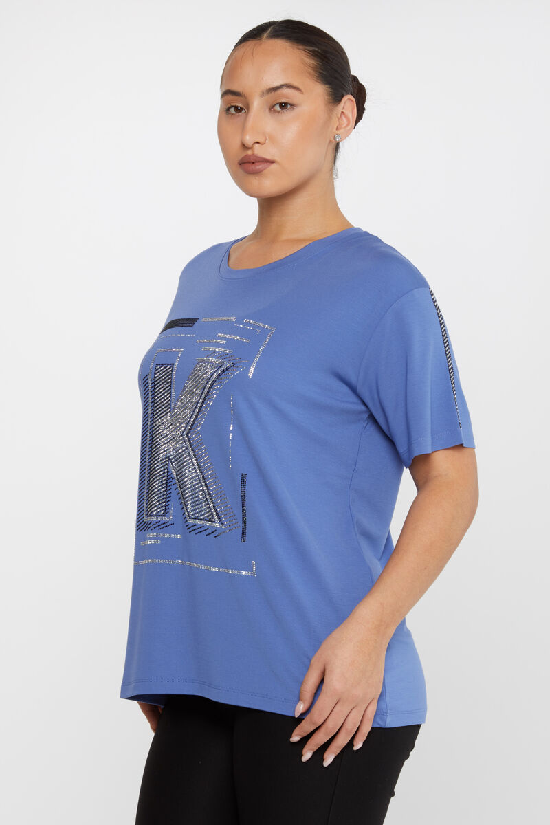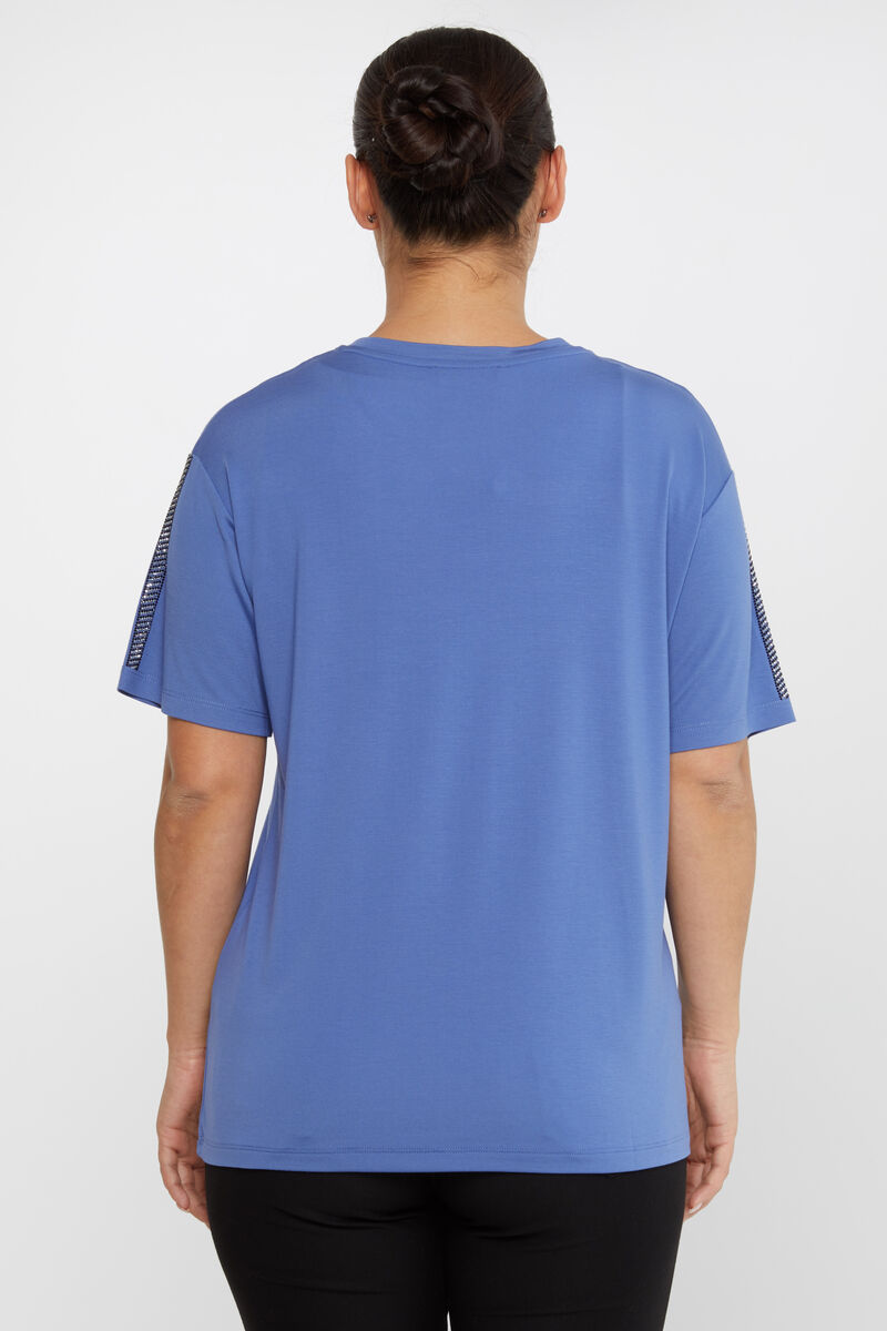 Kadın Bluz Taşlı Yazı Detaylı Mavi - 80100 | KAZEE