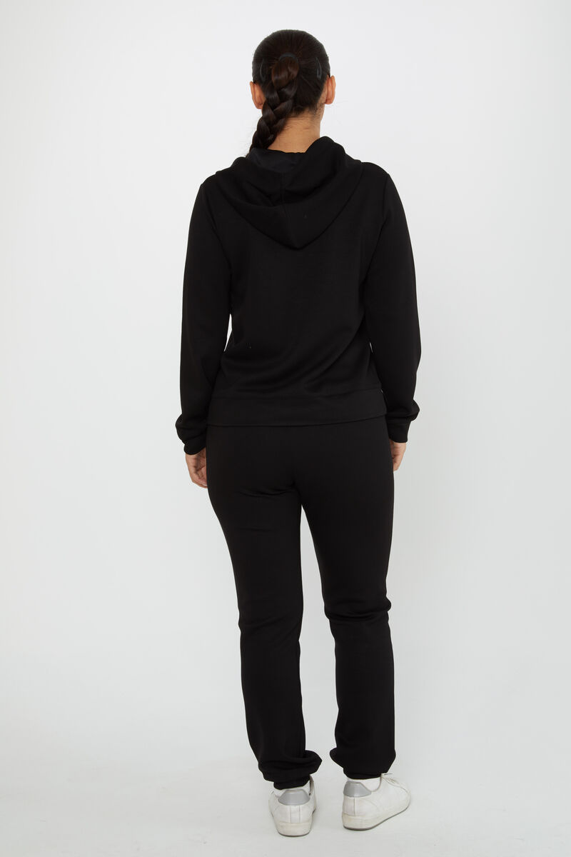 Kadın Eşofman Takımı Taş Detaylı Kapüşonlu Siyah - 17559 | KAZEE