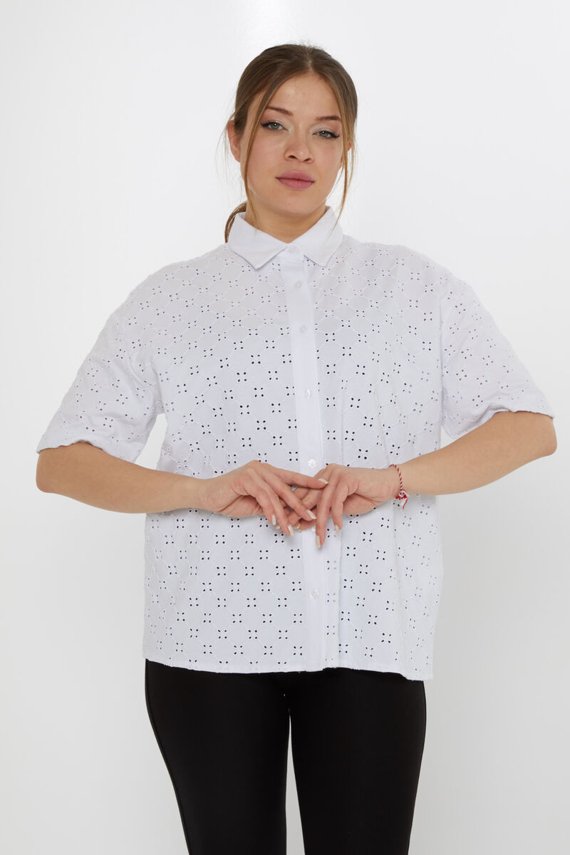 Kadın Gömlek Delik Detaylı Ekru - 20505 | KAZEE