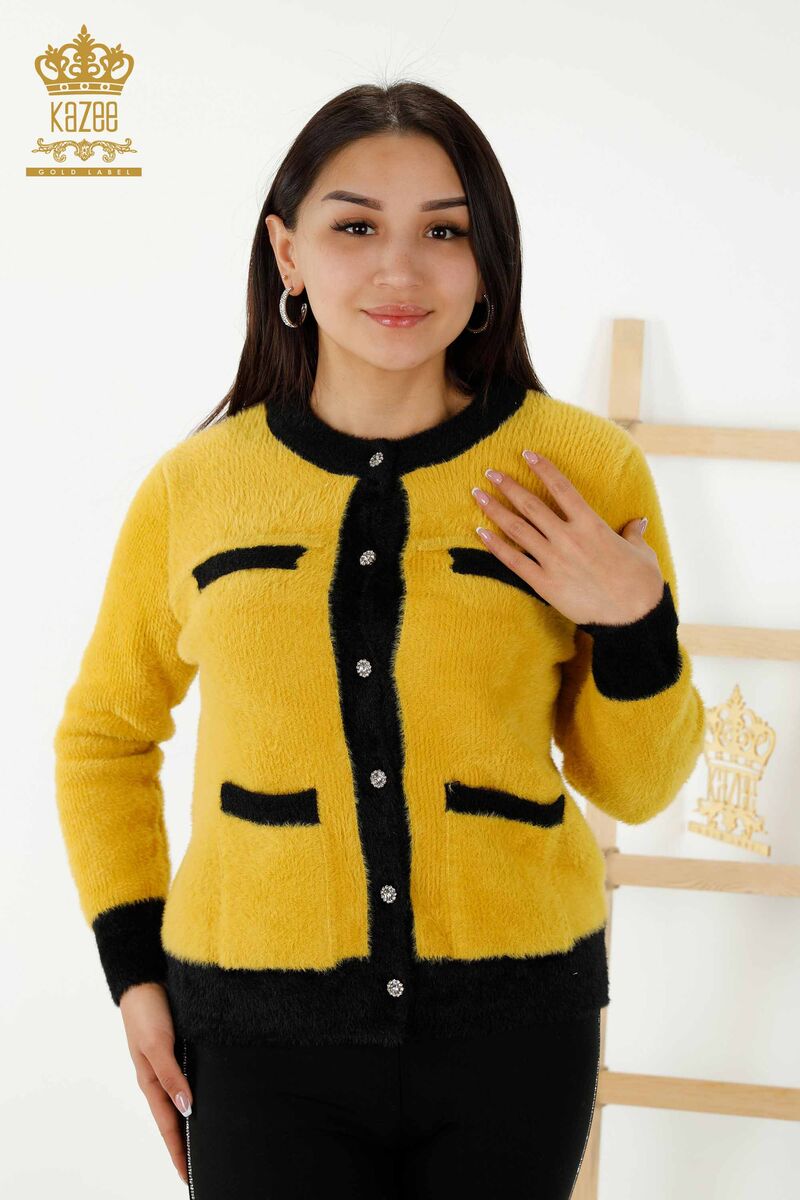 Kadın Hırka Düğmeli Cep Detaylı Taşlı Sarı - 30094 | KAZEE