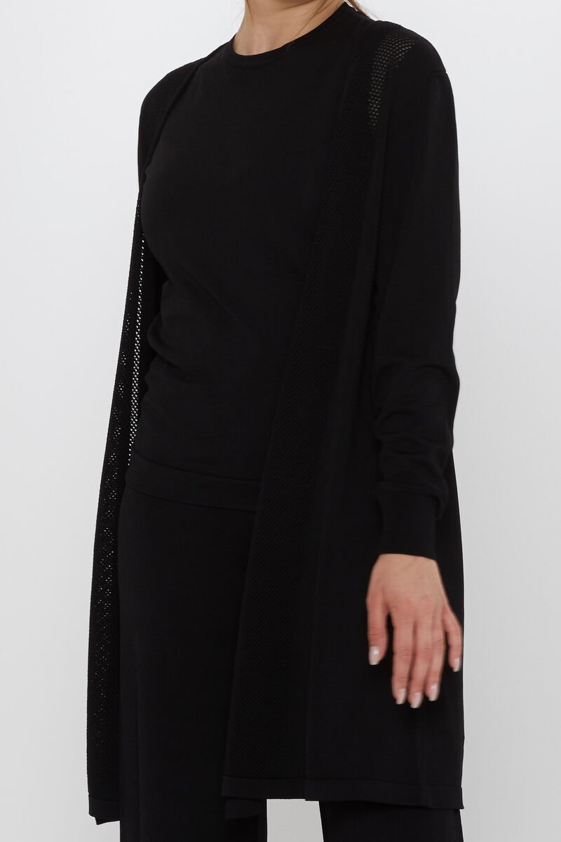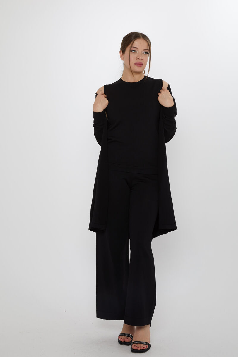 Kadın İkili Takım Sıfır Kol Bluz Delik Detaylı Hırka Siyah - 31842 | KAZEE