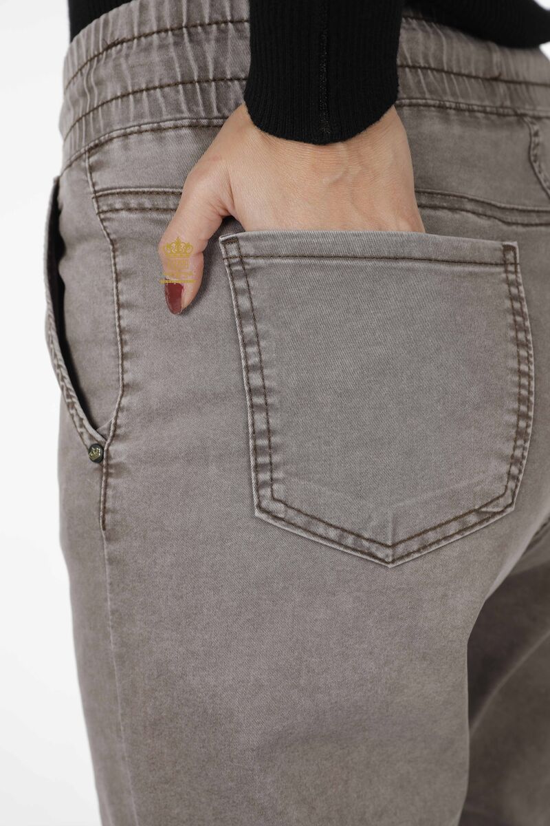 Kadın Kot Pantolon Bağlama Detaylı Yazılı Vizon - 3499 | KAZEE