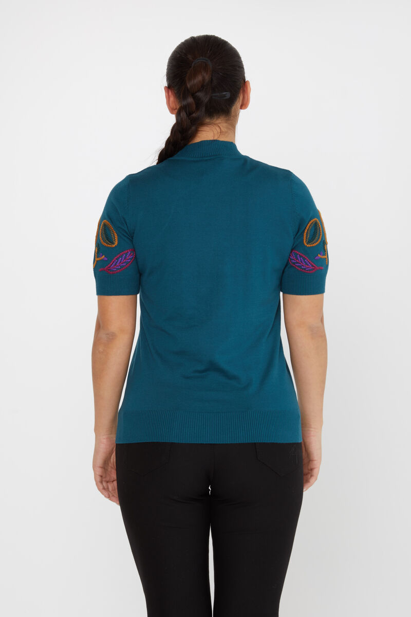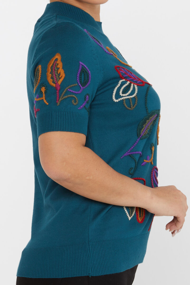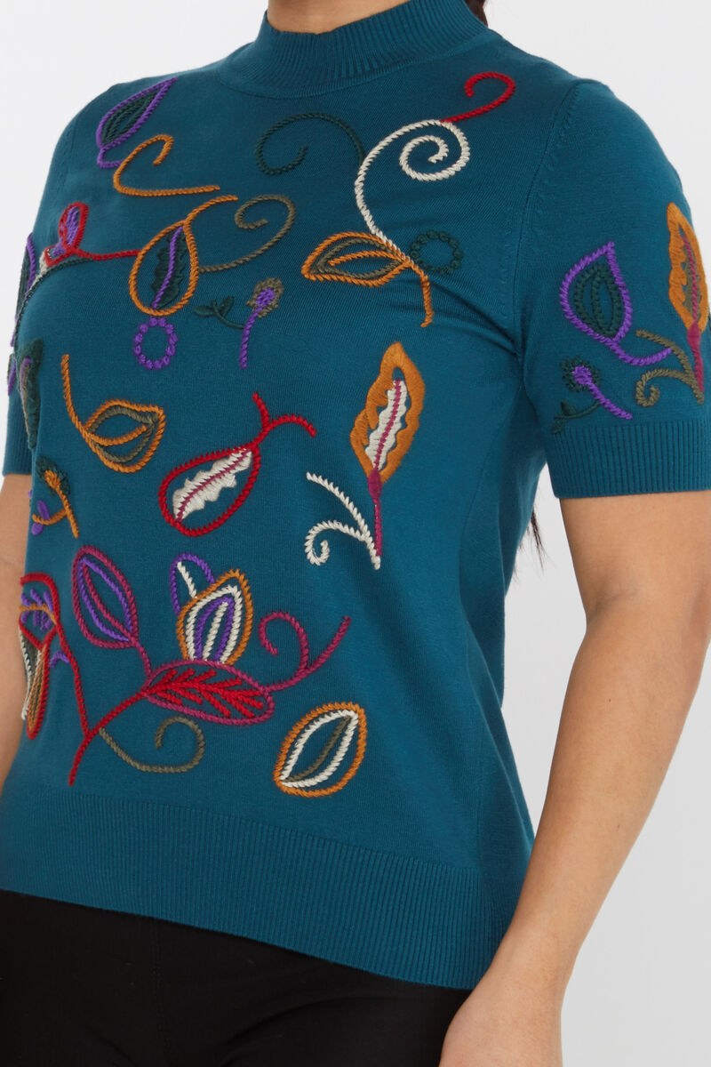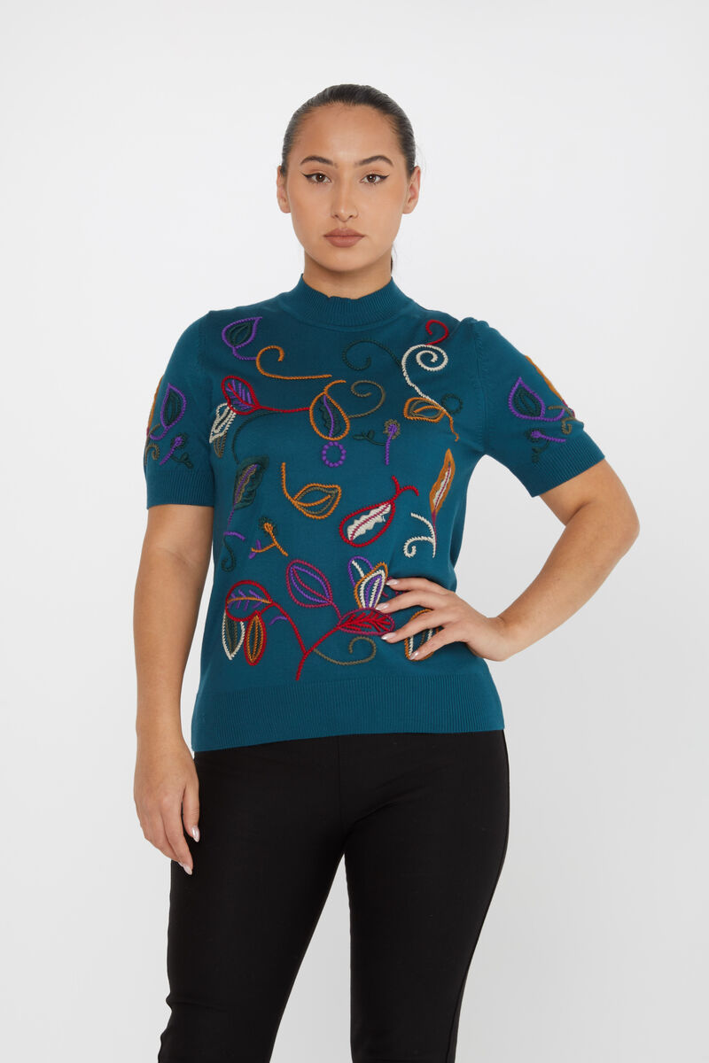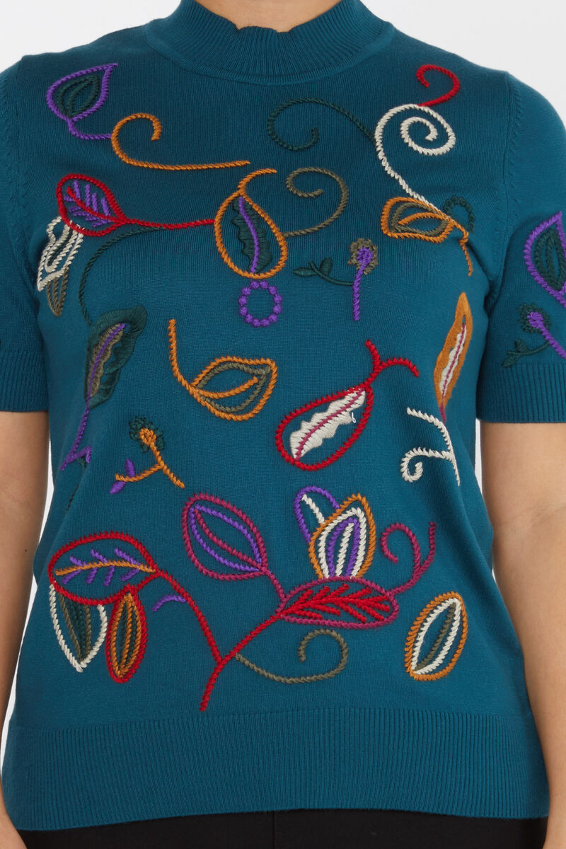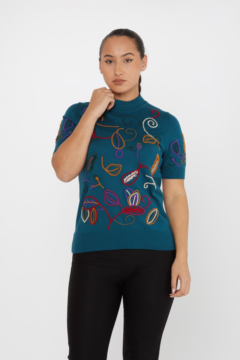 Kadın Triko Amerikan Model Nakışlı Petrol - 15844 | KAZEE