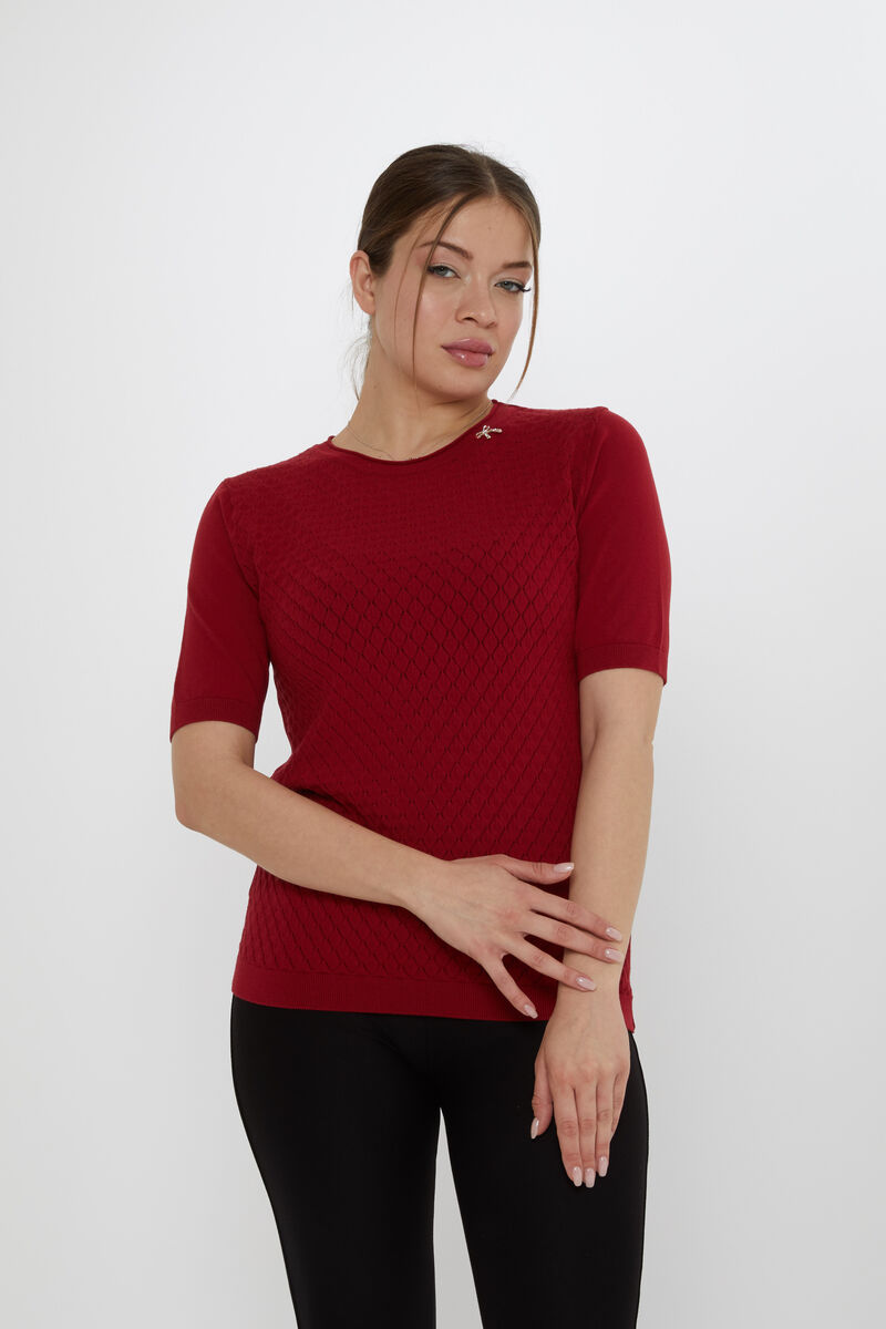Kadın Triko Aksesuar Detaylı Kendinden Desenli Bordo - 31815 | KAZEE