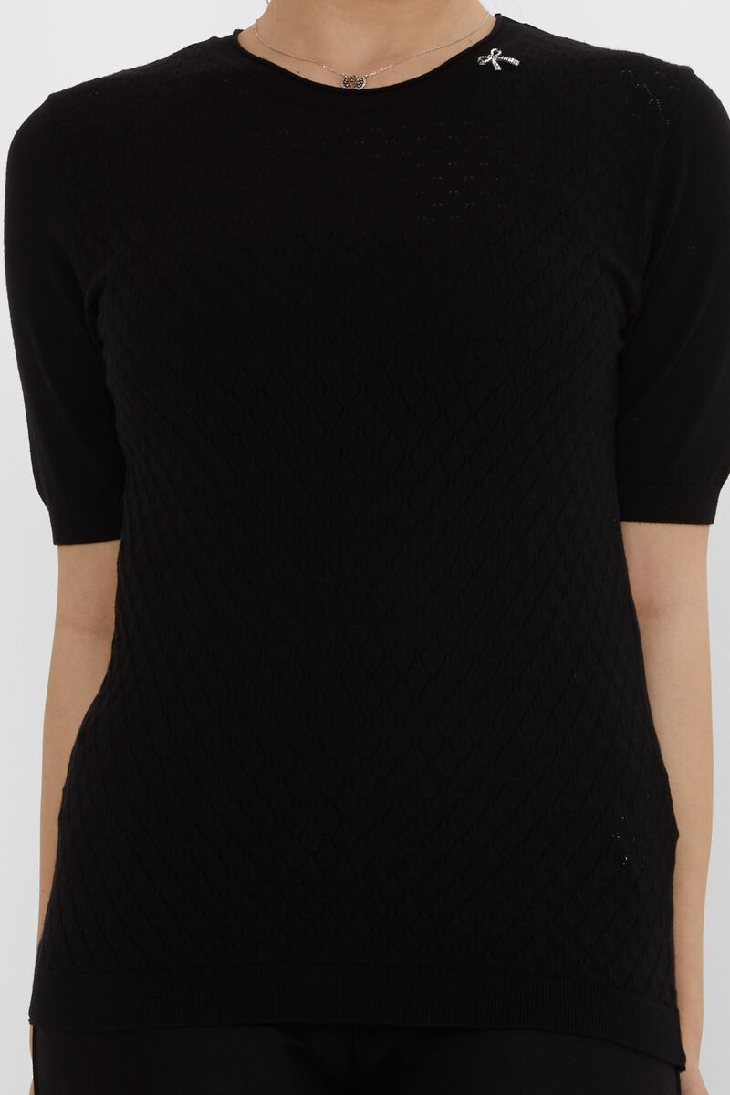 Kadın Triko Aksesuar Detaylı Kendinden Desenli Siyah - 31815 | KAZEE