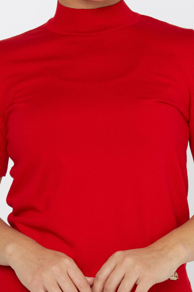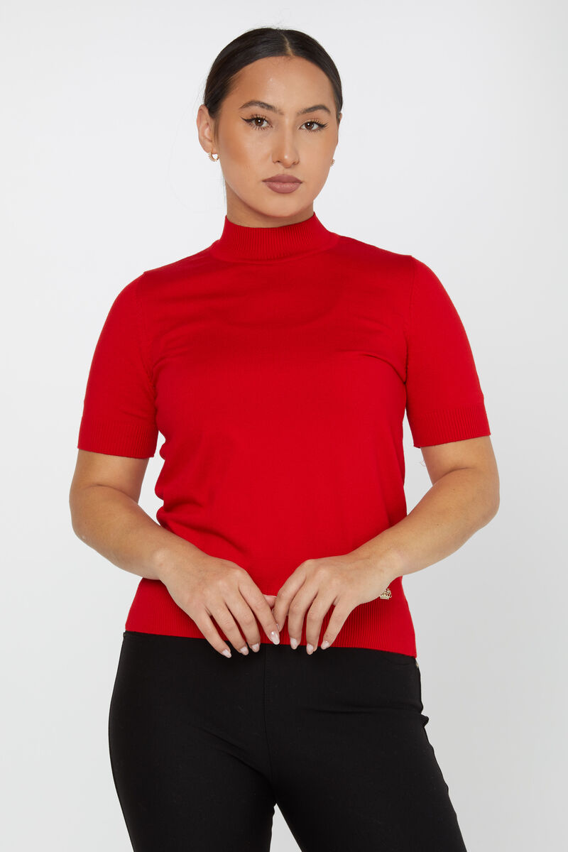 Kadın Triko Amerikan Model Dik Yaka Basic Kırmızı - 14541 | KAZEE
