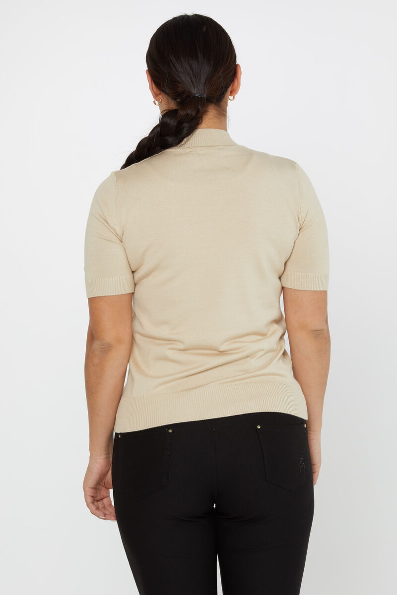 Kadın Triko Amerikan Model Dik Yaka Basic Taş - 14541 | KAZEE
