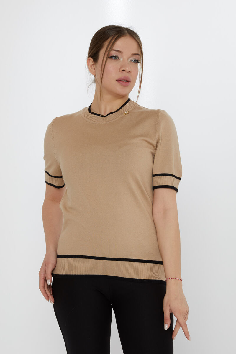 Kadın Triko Amerikan Model Aksesuar Detaylı Bej-Siyah - 31292 | KAZEE