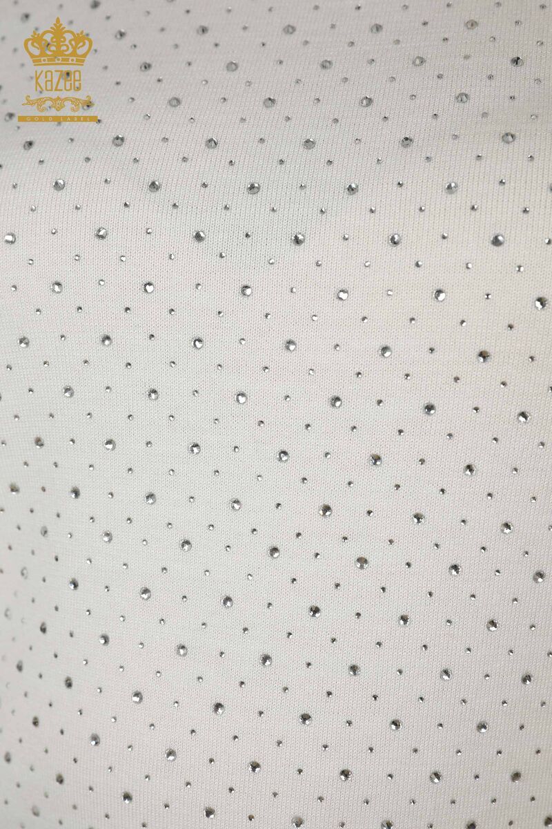 Kadın Triko Amerikan Model Taş İşlemeli Dik Yaka Ekru - 16950 | KAZEE