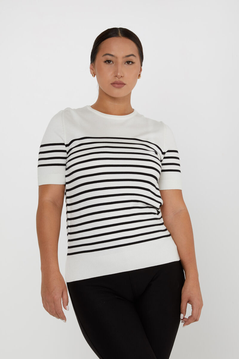 Kadın Triko Amerikan Model Çizgili Bisiklet Yaka Ekru - 30396 | KAZEE