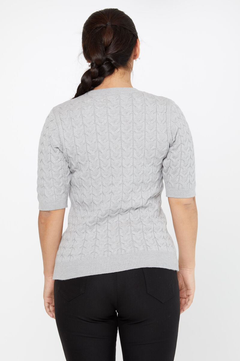 Kadın Triko Amerikan Model Taşlı Bisiklet Yaka Gri - 30773 | KAZEE