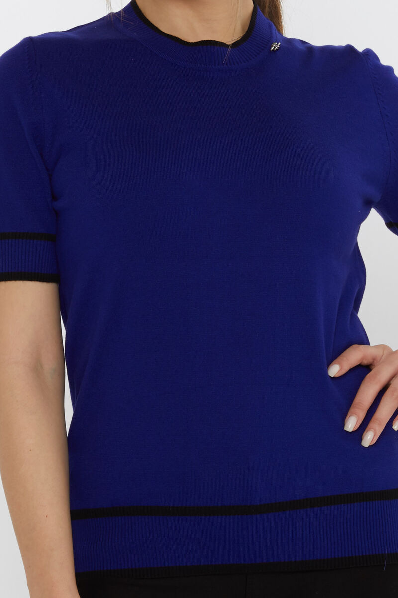 Kadın Triko Amerikan Model Aksesuar Detaylı Saks-Siyah - 31292 | KAZEE