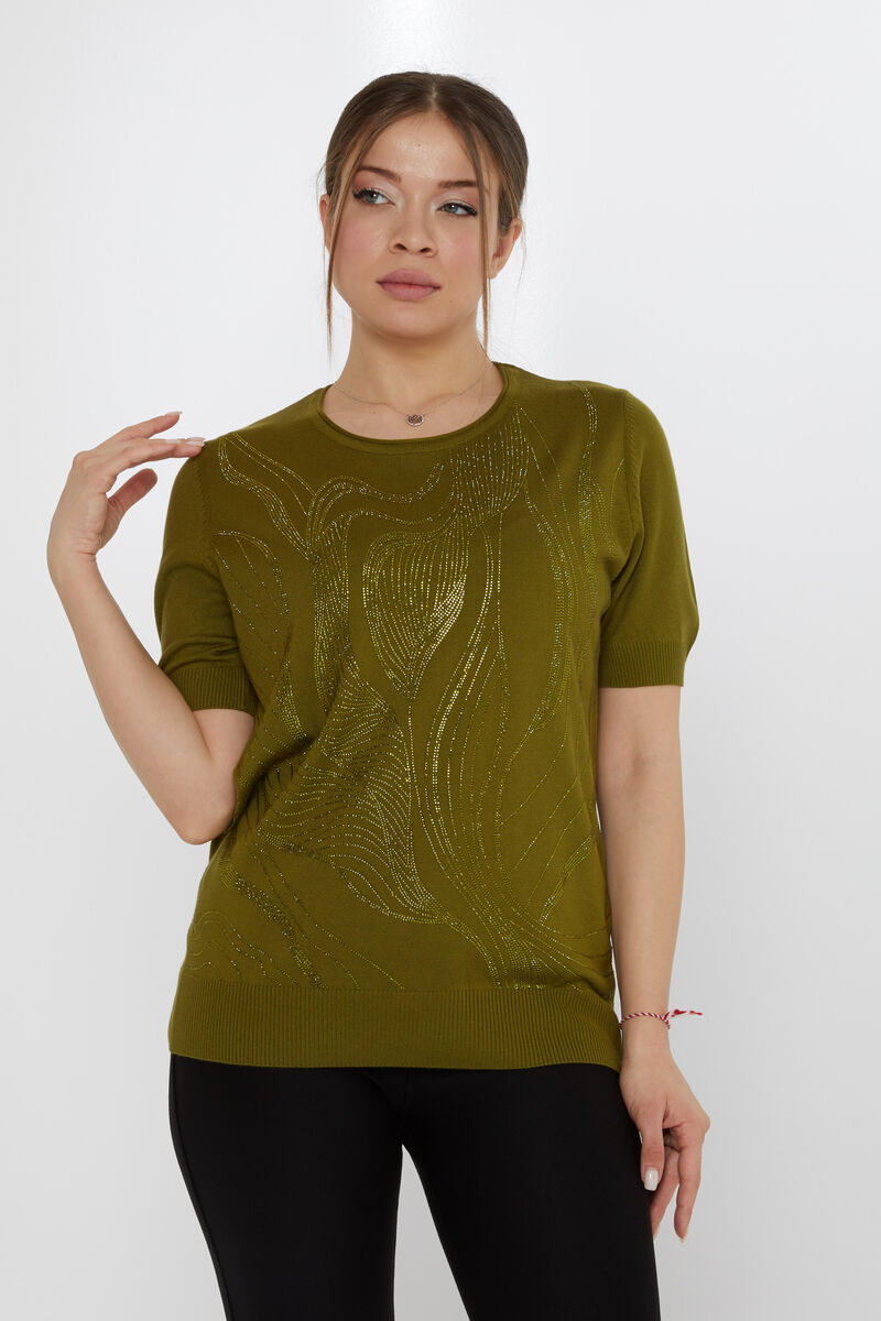 Kadın Triko Amerikan Model Taşlı Koyu Yeşil - 30315 | KAZEE