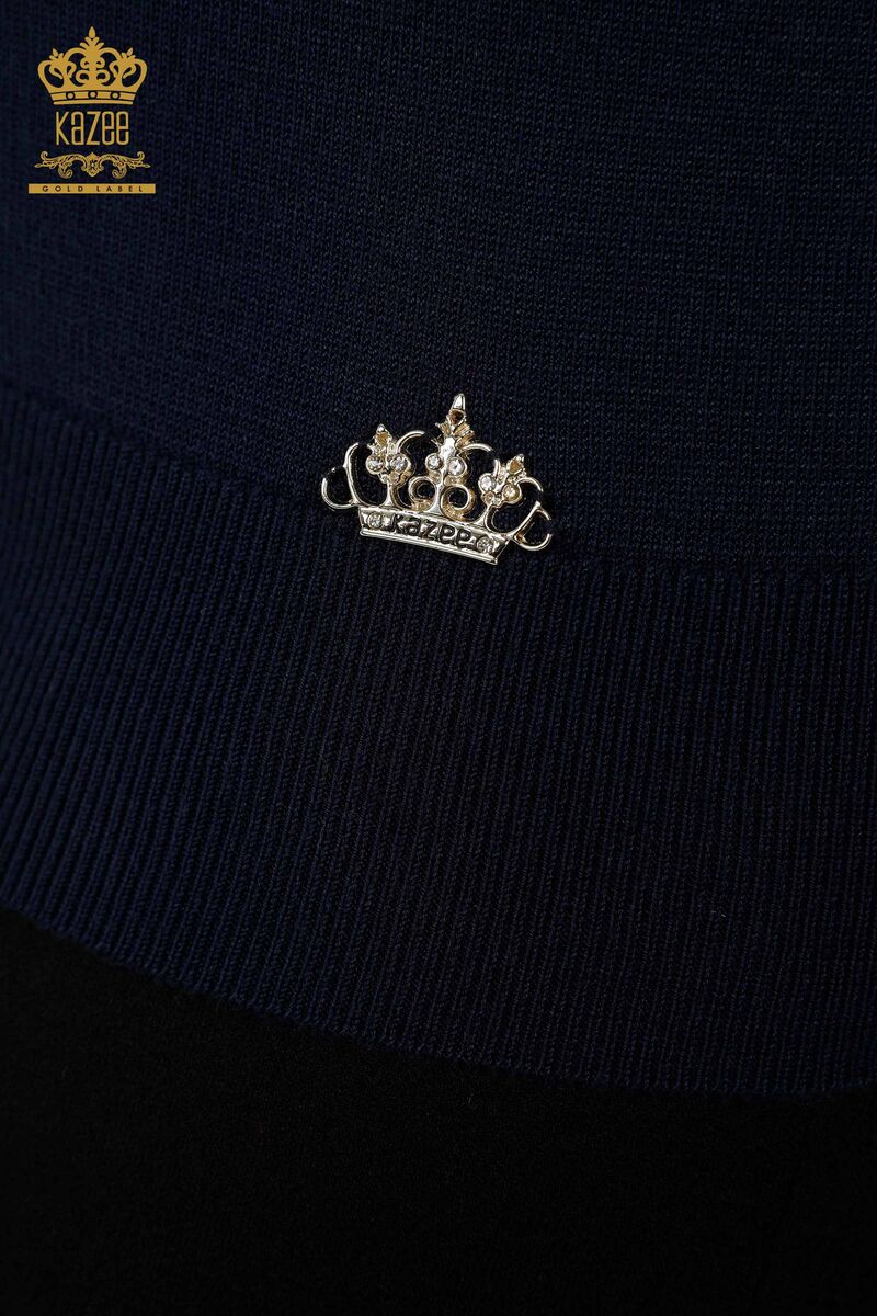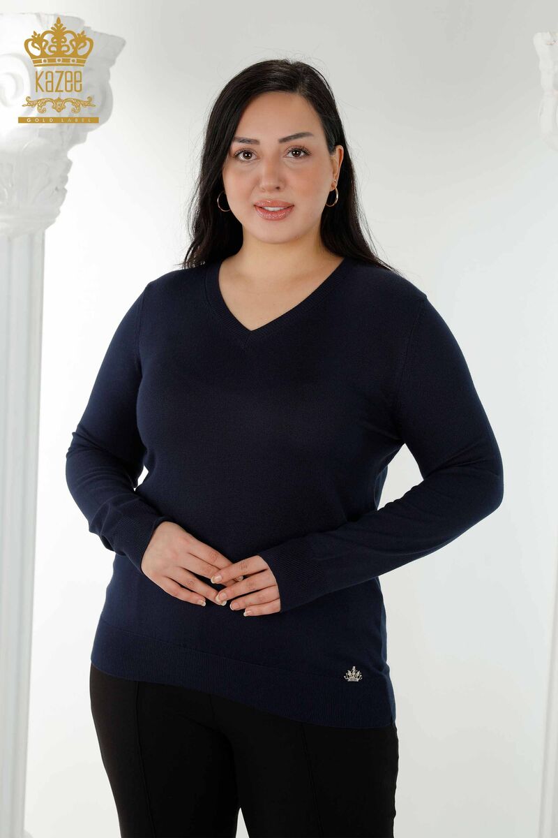 Kadın Triko Basic V Yaka Kazee Logolu Lacivert - 30181 | KAZEE