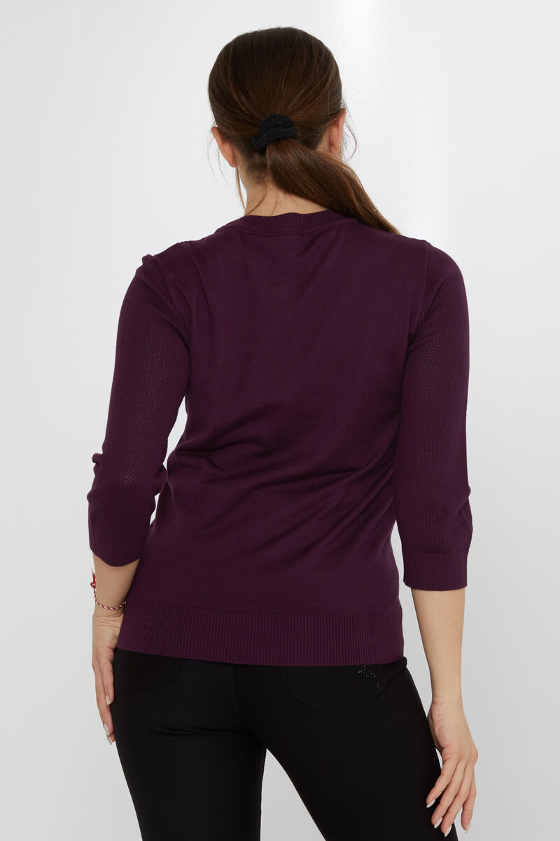 Kadın Triko Bisiklet Yaka Kendinden Desenli Mor - 30258 | KAZEE