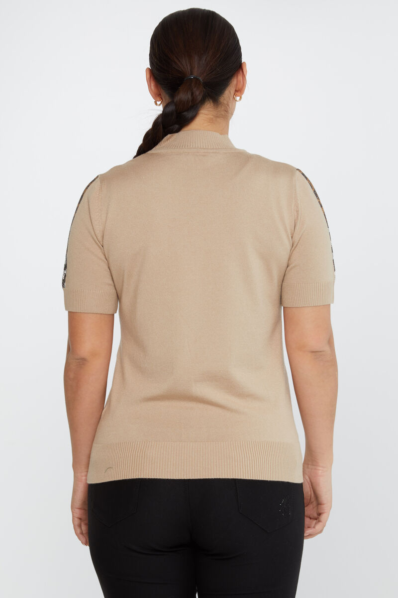 Kadın Triko Cep Taş Detaylı Bej - 31623 | KAZEE