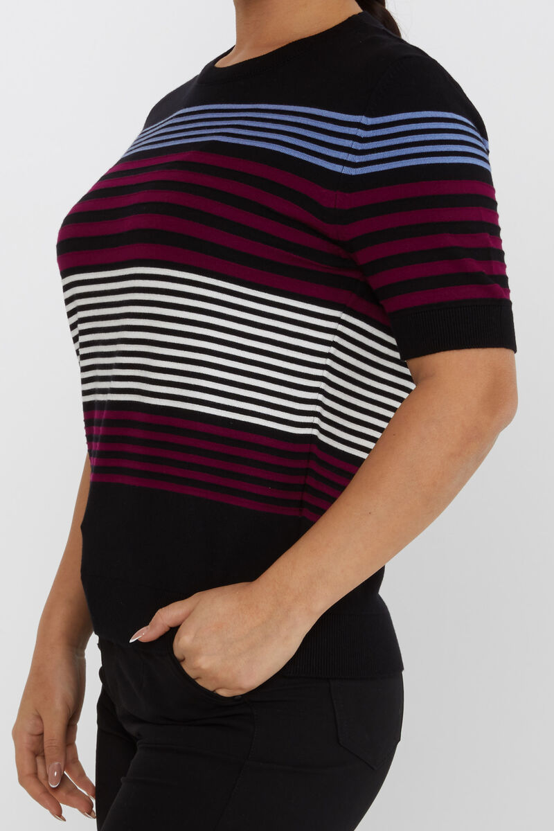Kadın Triko Kısa Kollu Çizgi Detaylı Bordo - 31689 | KAZEE