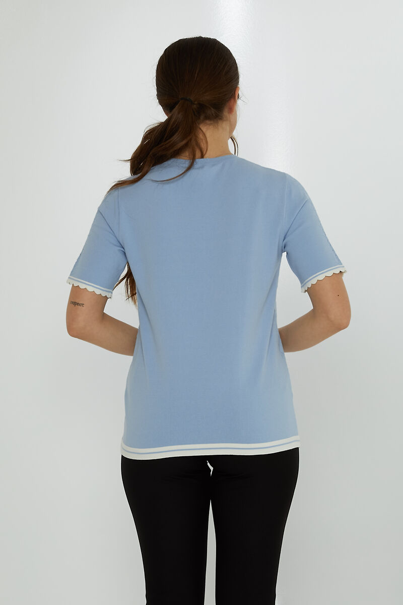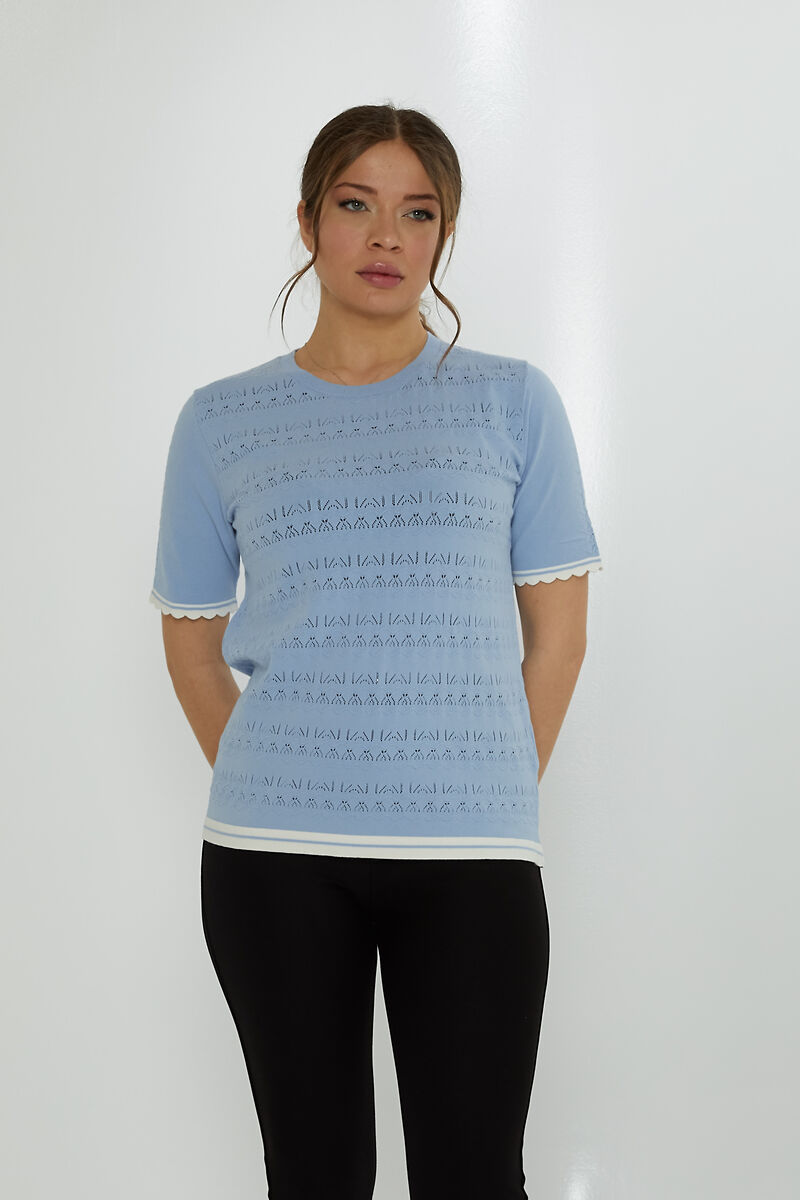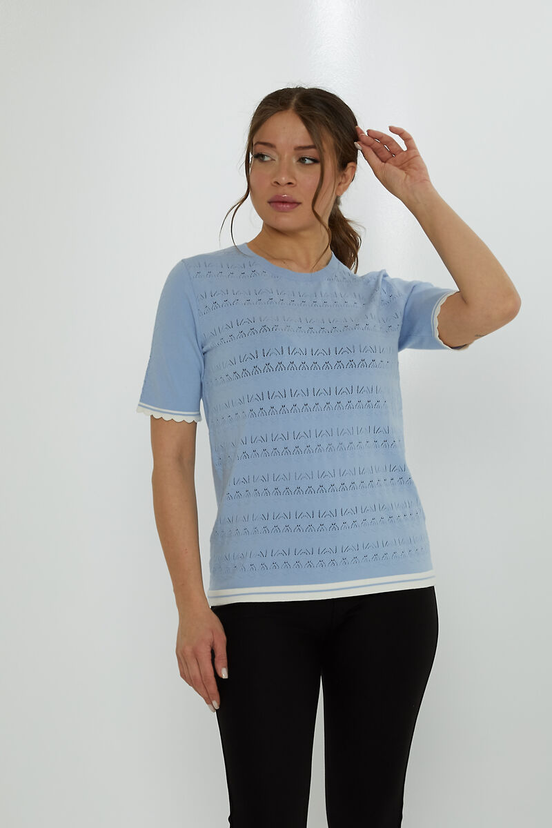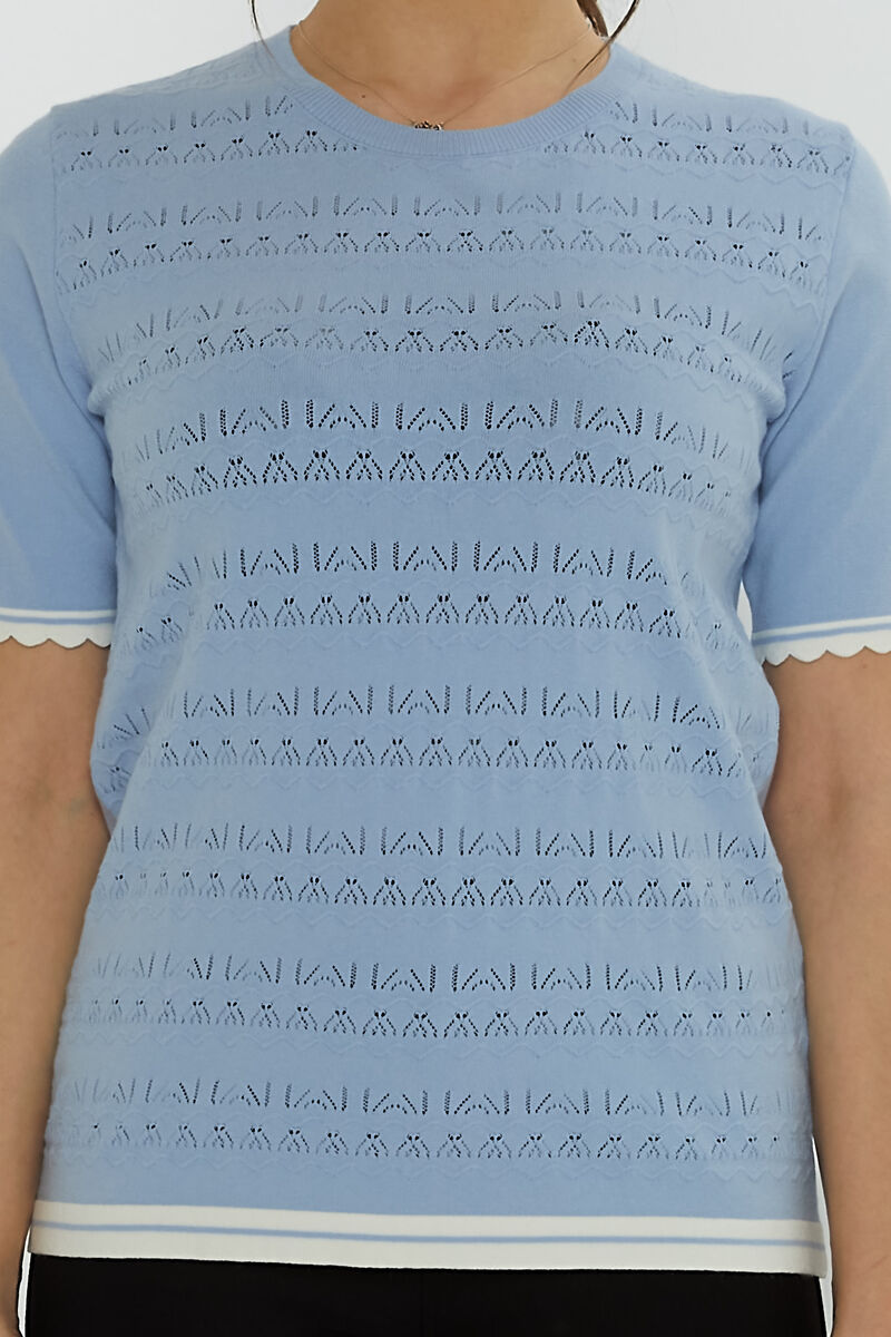 Kadın Triko Bisiklet Yaka Delik Detaylı Mavi - 31762 | KAZEE