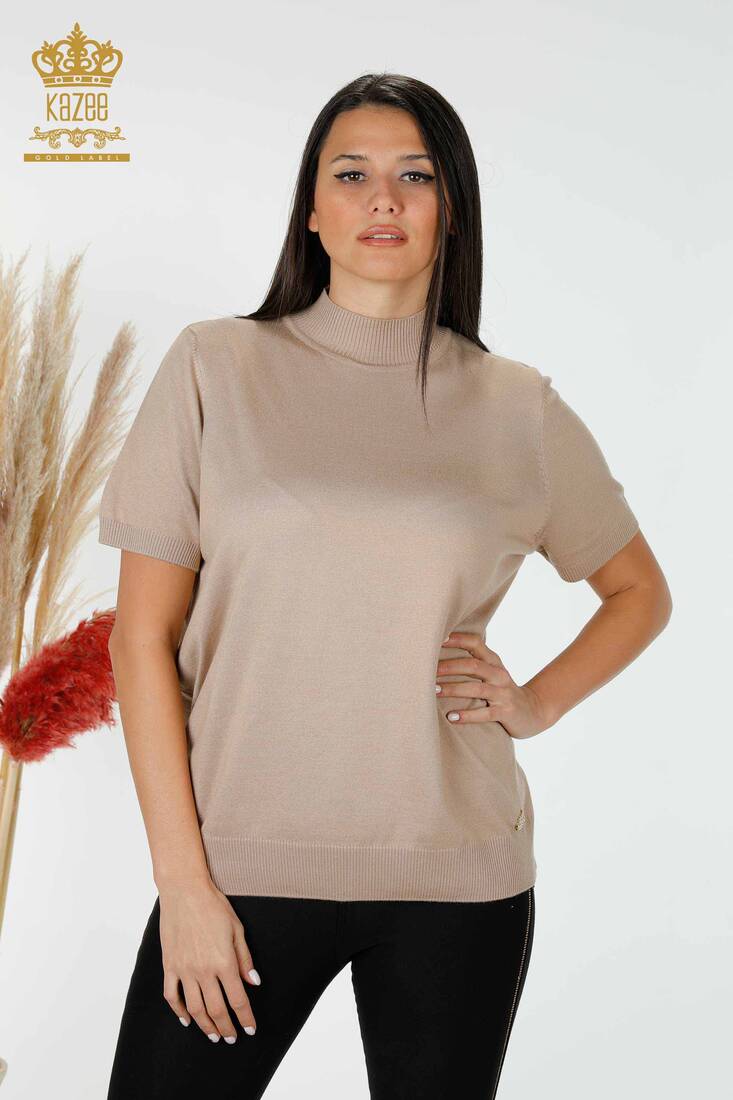 Kadın Triko Dik Yaka Kazee Logolu Koyu Bej - 16168 | KAZEE
