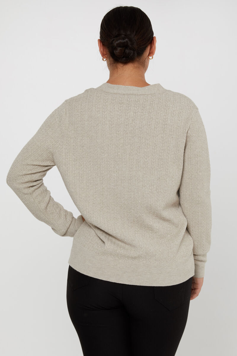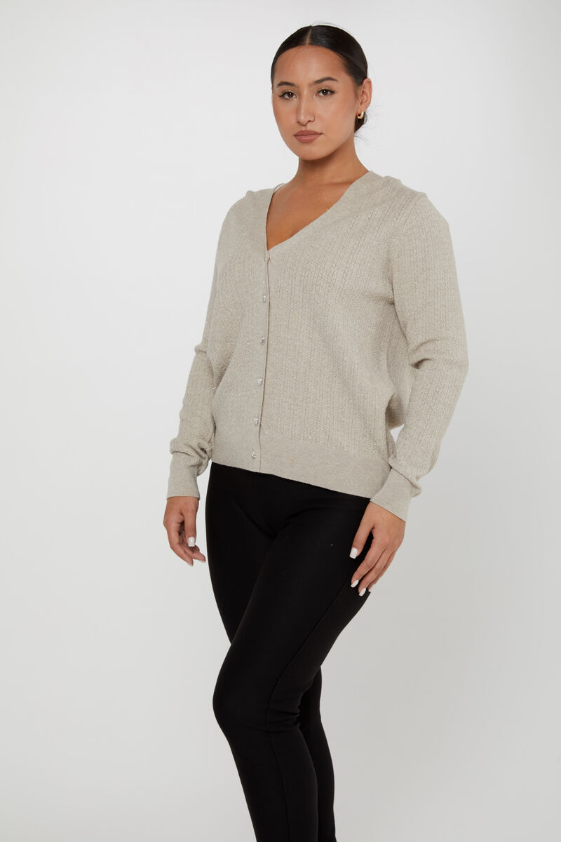 Kadın Triko Hırka Düğme Detaylı Simli Bej - 31052 | KAZEE