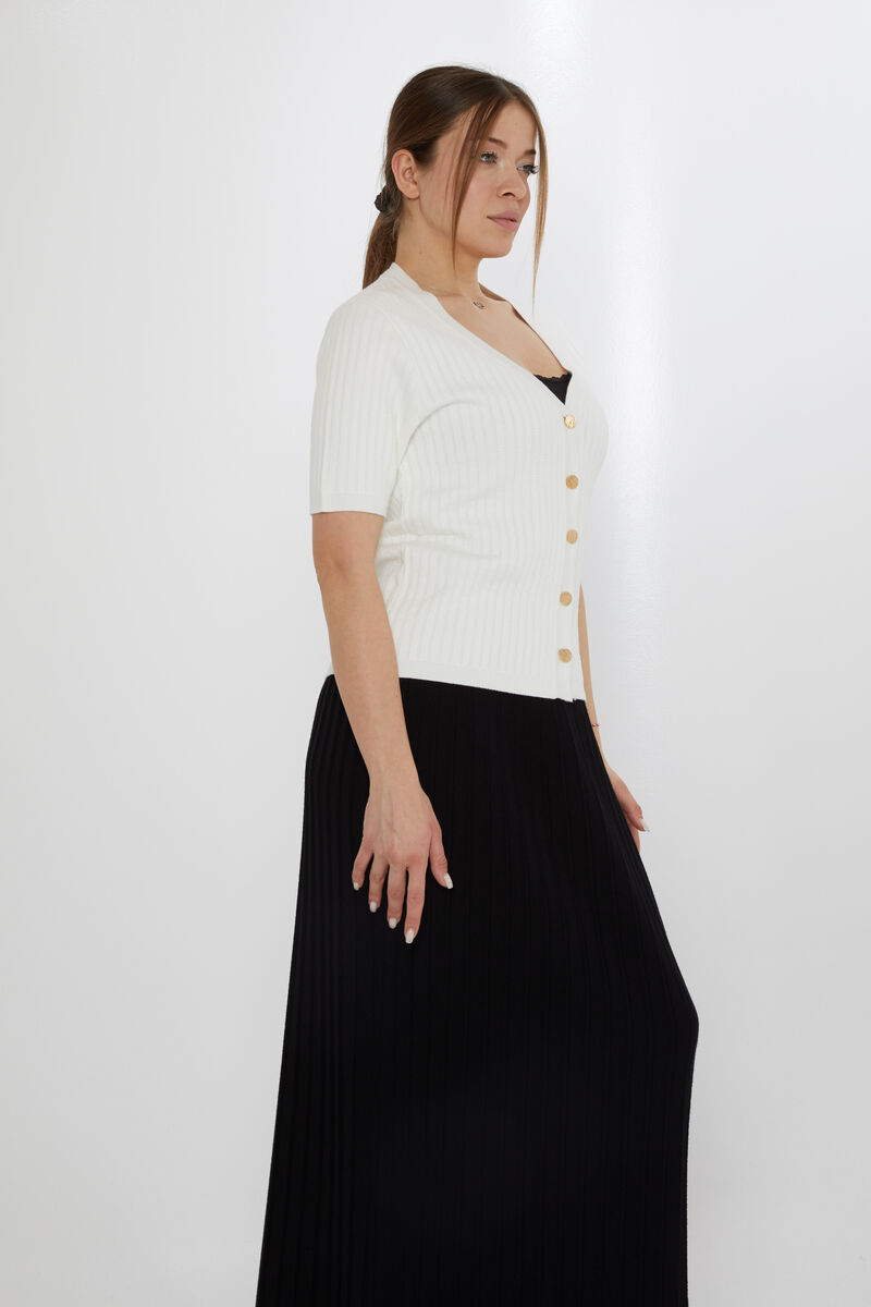 Kadın Triko Hırka Düğme Detaylı Ekru - 30701 | KAZEE