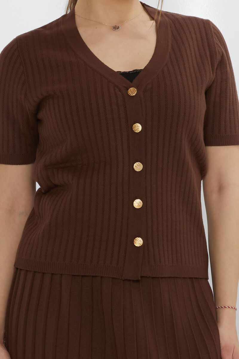 Kadın Triko Hırka Düğme Detaylı Kahve - 30701 | KAZEE