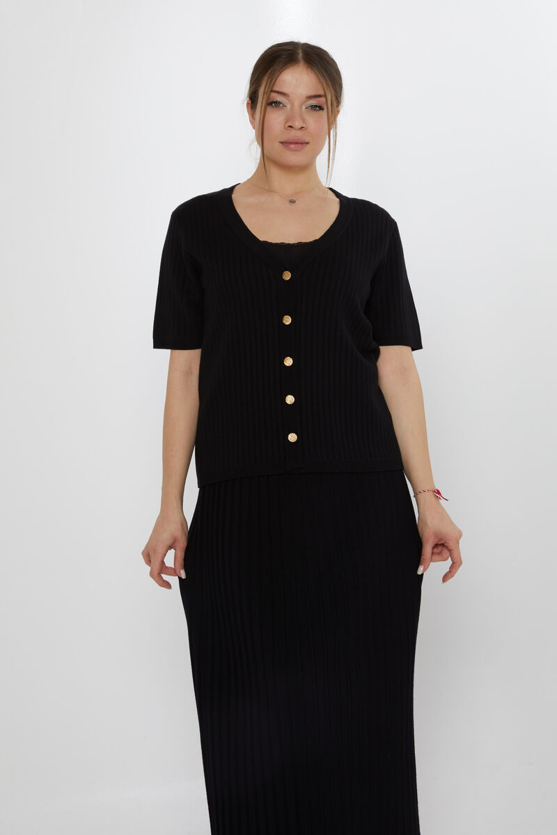 Kadın Triko Hırka Düğme Detaylı Siyah - 30701 | KAZEE