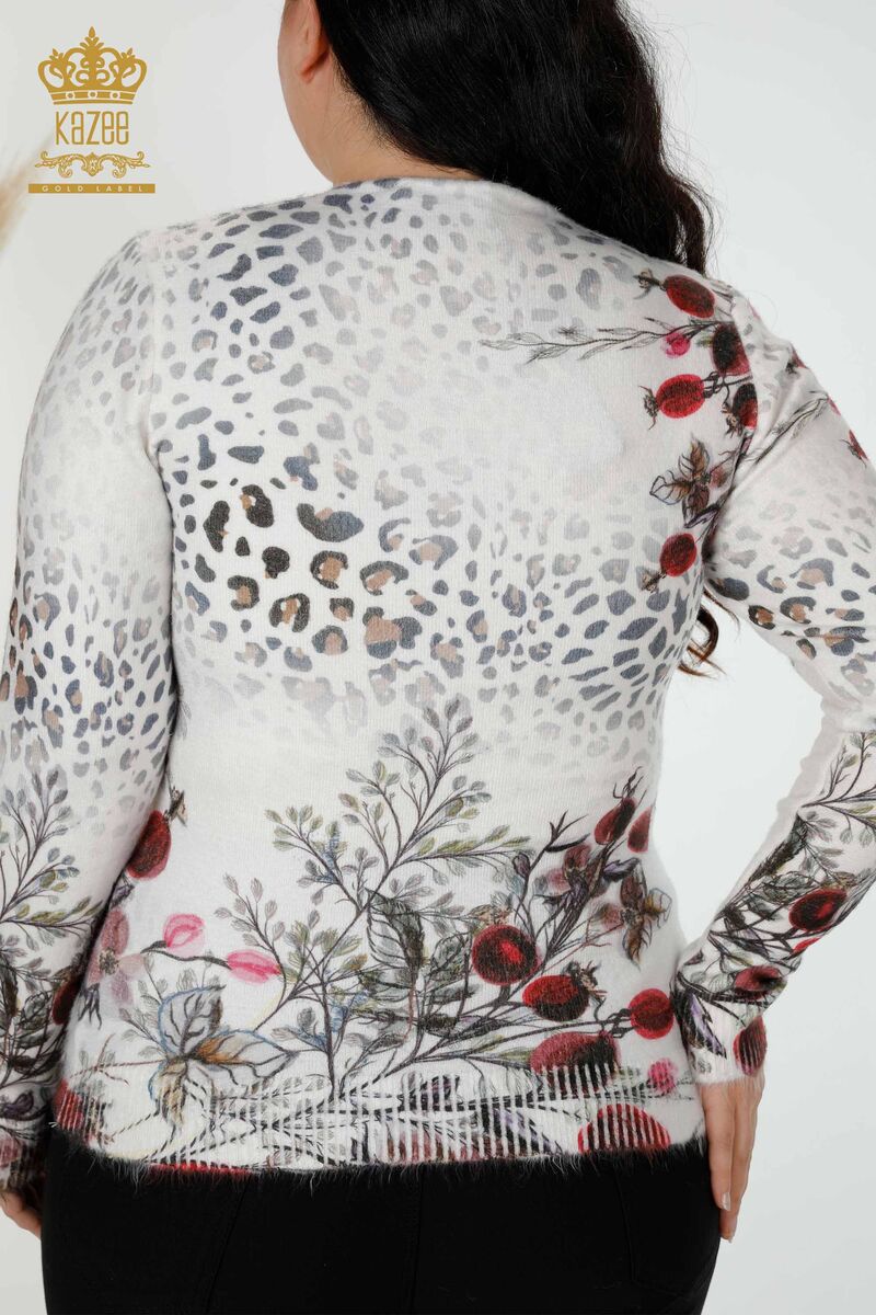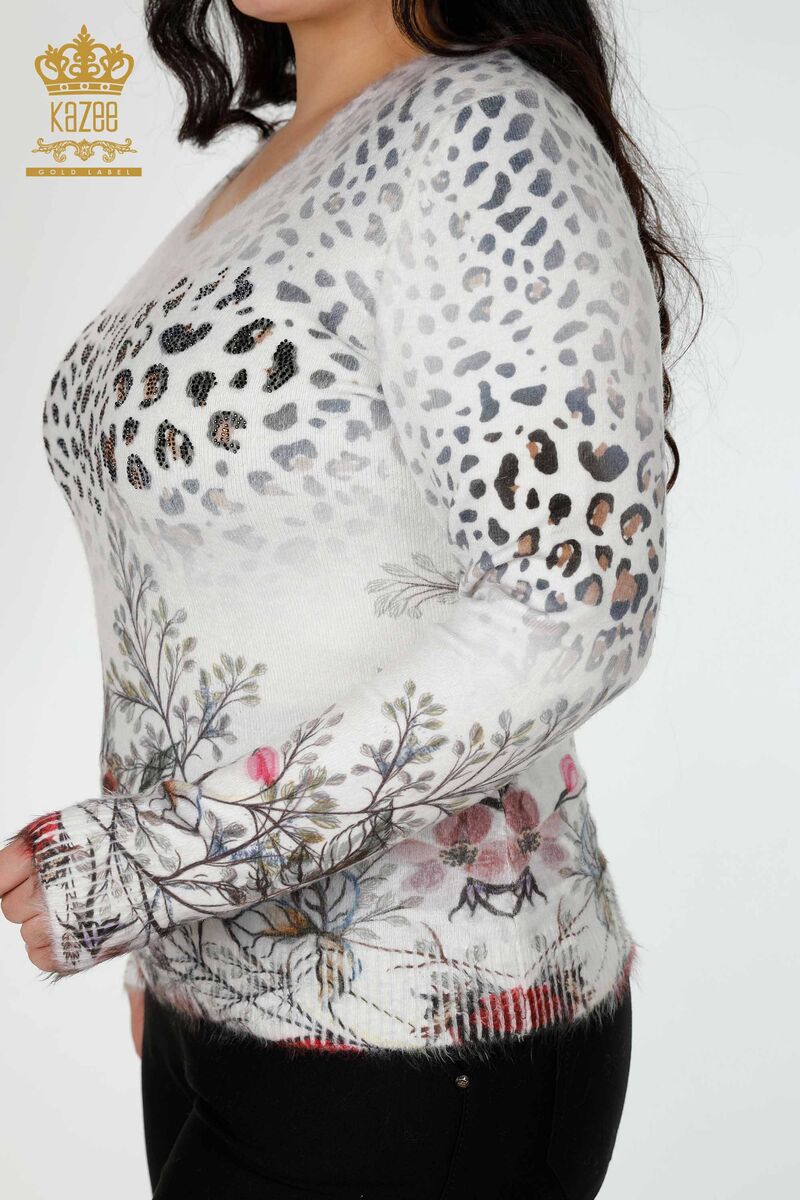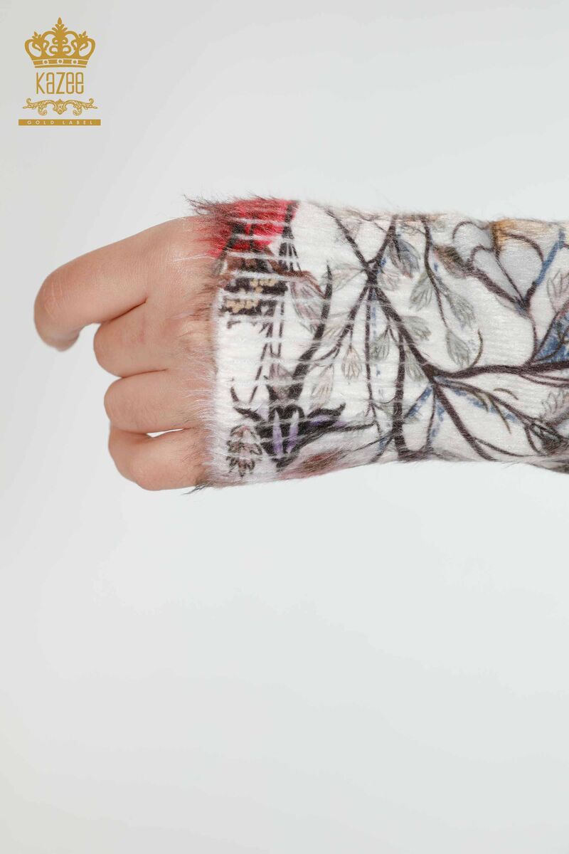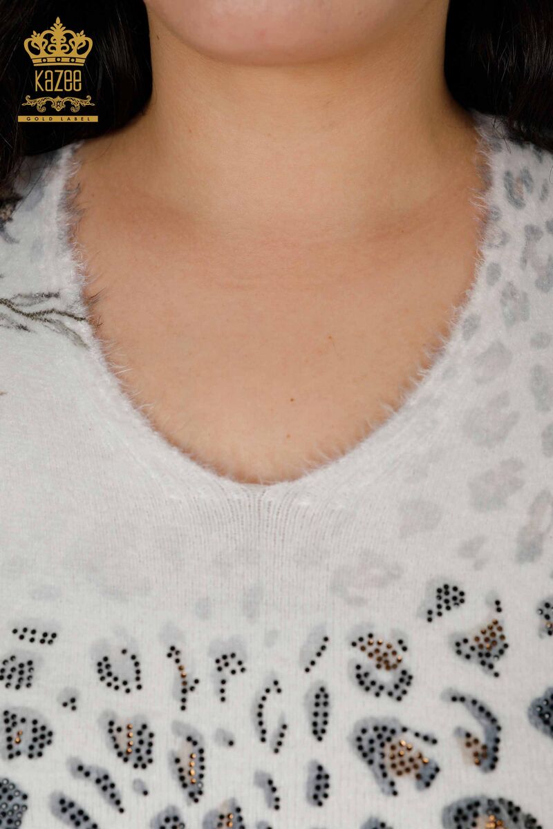 Kadın Triko Kazak Taş İşlemeli Bisiklet Yaka Angora Ekru - 18978 | KAZEE