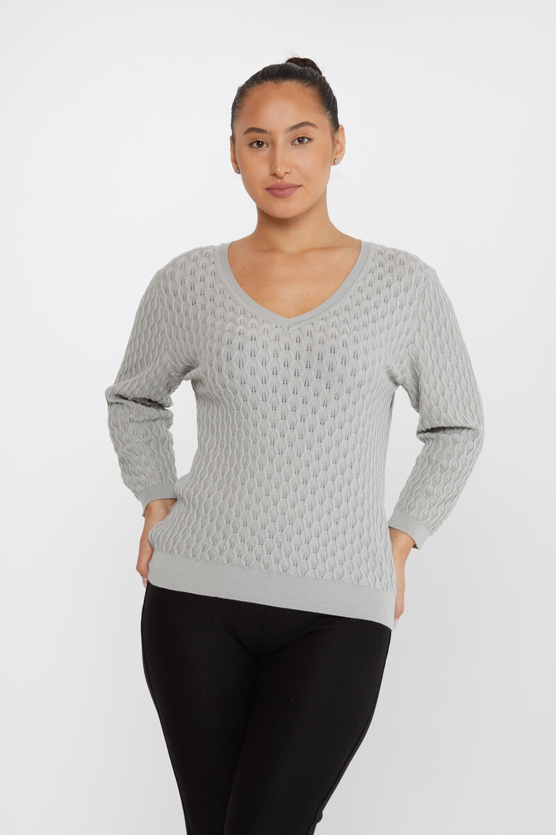 Kadın Triko Uzun Kollu Kendinden Dokumalı Gri - 31247 | KAZEE