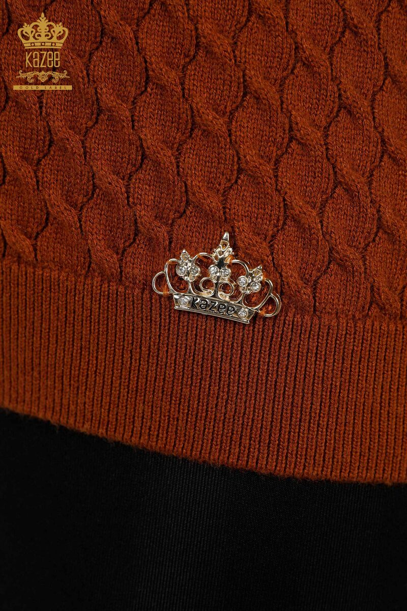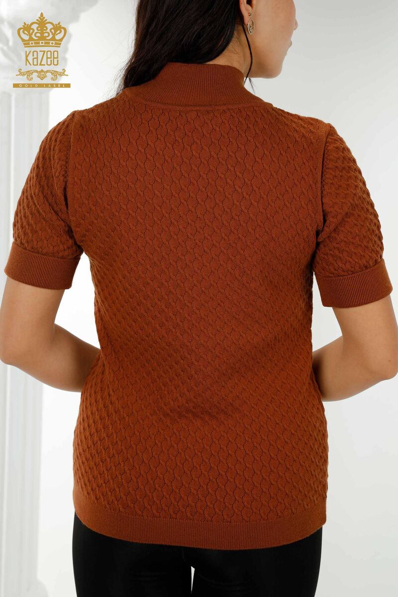 Kadın Triko Kısa Kol Kazee Logolu Dik Yaka Taba - 30119 | KAZEE