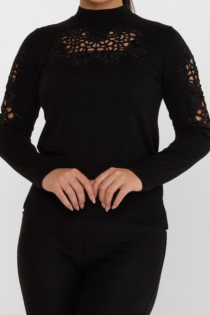 Kadın Triko Nakış Detaylı Taşlı Siyah - 31262 | KAZEE