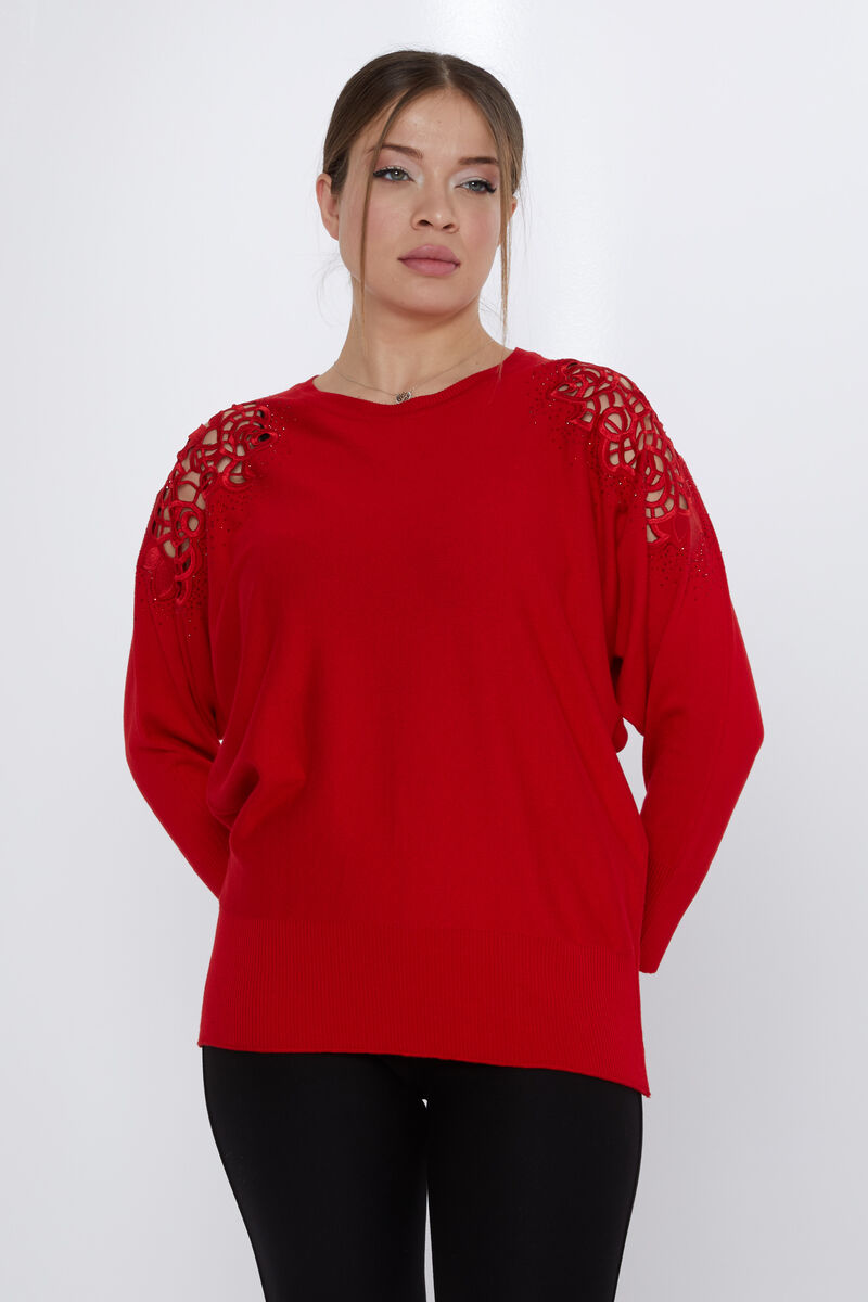 Kadın Triko Taşlı Nakışlı Omuz Detaylı Kırmızı - 31288 | KAZEE