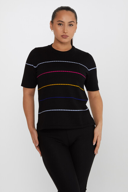 Kadın Triko Renkli Çizgi Detaylı Siyah - 31659 | KAZEE